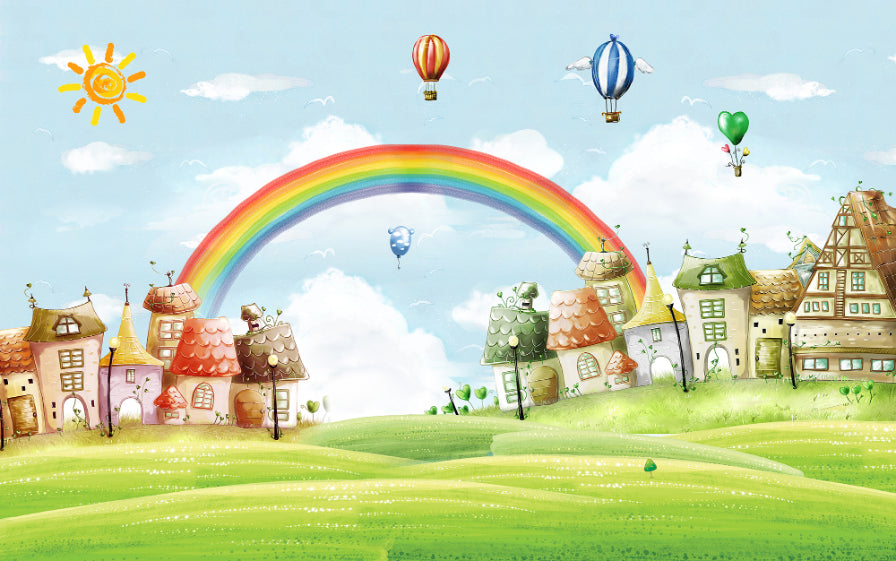 Kids City Landscape Rainbow Balloons Wallpaper Murals - Giffywalls