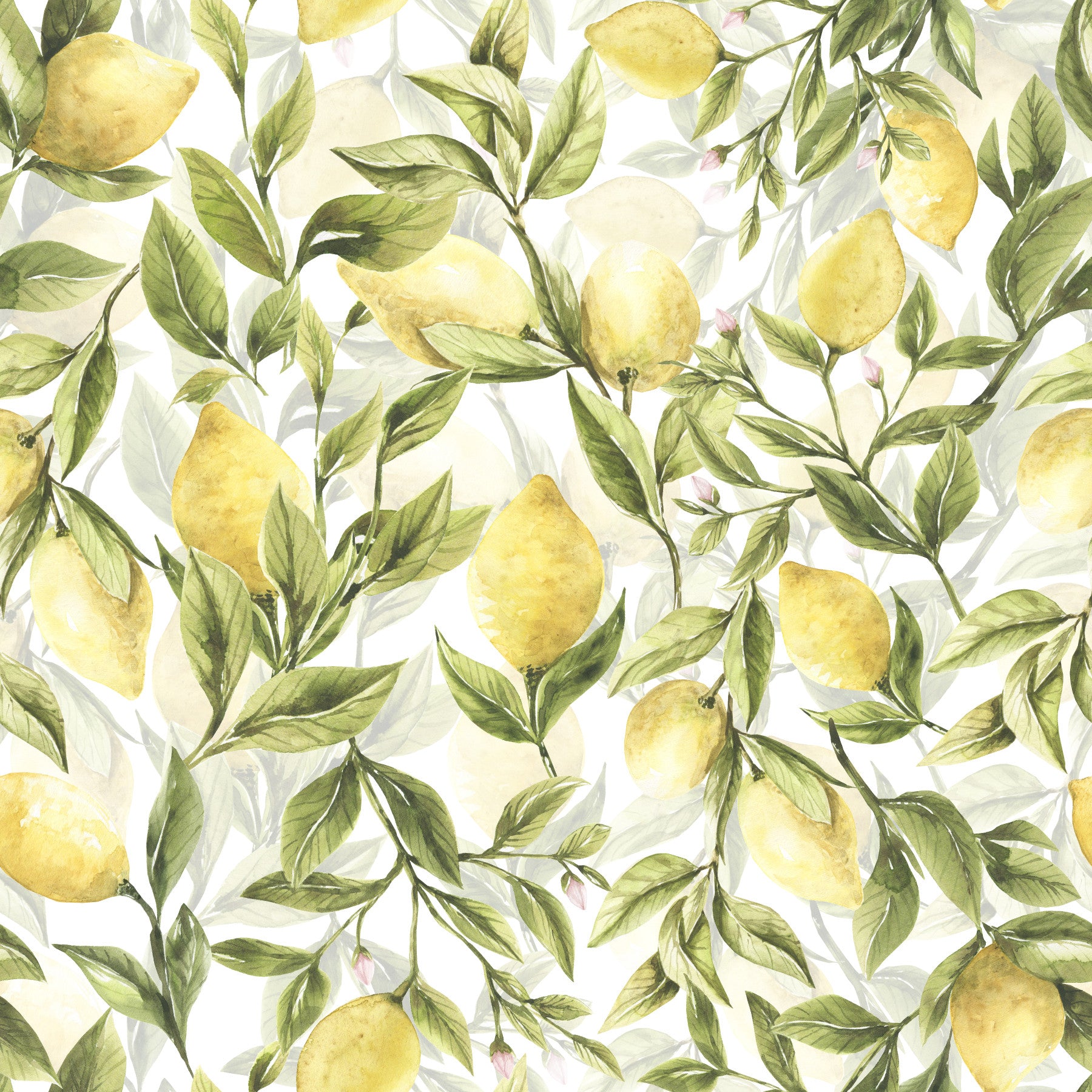 Bring a touch of sunshine into your home with this delightful lemon-themed wallpaper by Uta Naumann. Fresh lemons mingle with vibrant green leaves, creating a lively and inviting ambiance. The watercolor style gives the design a soft, artistic feel, perfect for kitchens, dining rooms, or any space where you want to inject some zest. This wallpaper for walls creates a welcoming atmosphere and complements bright, airy interiors, adding a cheerful and natural element to your décor. It works wonders in creating a vibrant and refreshing aesthetic.