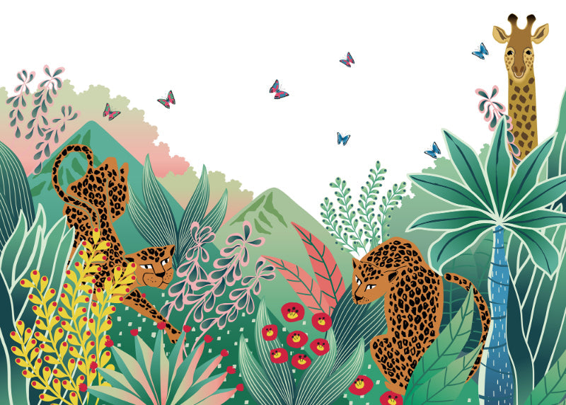 Tropical jungle with leopards and giraffe art