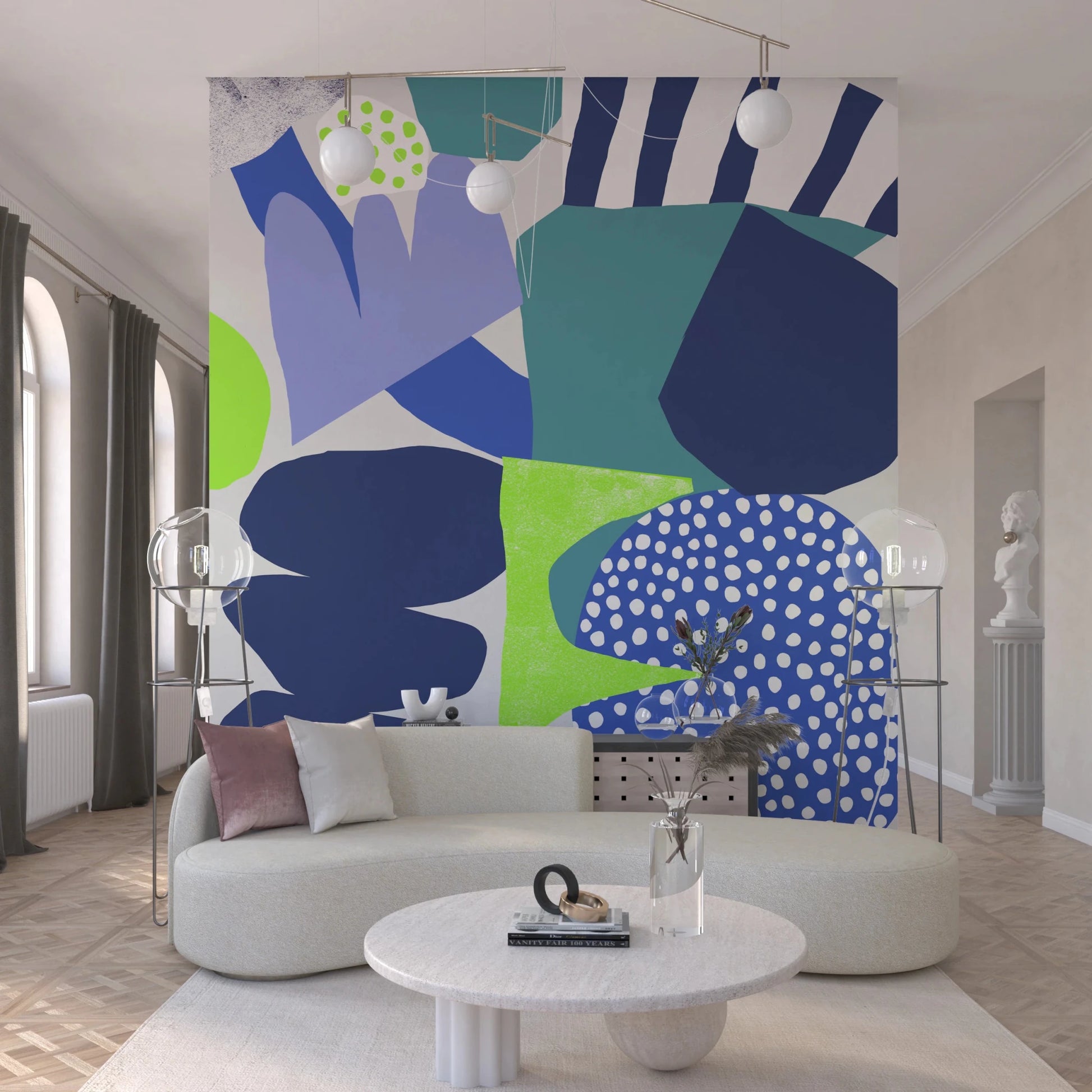 Dive into the whimsical world of "Lil Blue," a playful composition of abstract shapes and vibrant hues. This design evokes a sense of childlike wonder with its collage-like arrangement of bold blues, playful greens, and crisp whites. The organic forms create a dynamic energy, inviting you to explore the unique textures and patterns within each element. From the polka-dotted spheres to the striped segments, "Lil Blue" offers a refreshing take on modern art, adding a touch of lighthearted sophistication to any space. Embrace the charm and let "Lil Blue" transform your walls into a canvas of joyful expression.
