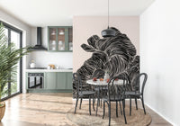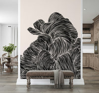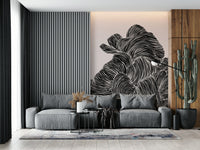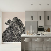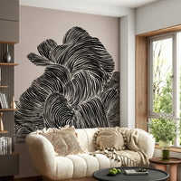 Transform your space with this captivating wallpaper for walls. Featuring bold, black linear patterns undulating across a neutral background, this design creates a striking visual texture. The monochrome palette makes it exceptionally versatile, seamlessly integrating into various décor styles. Use it to create a sophisticated atmosphere in a living room, an intriguing backdrop in a study, or an eye-catching accent in a hallway. The flowing lines add a sense of movement and depth, enhancing smaller rooms while complementing expansive spaces. This wallpaper design brings a touch of contemporary artistry to any interior.