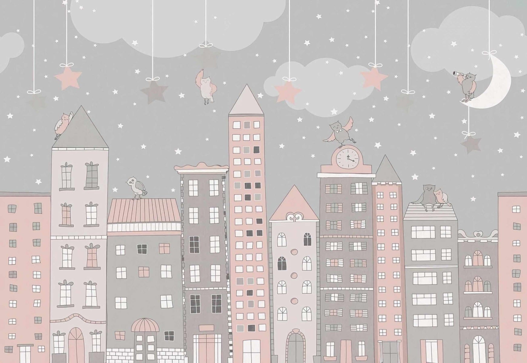 Artistic Cityscape for Kids' Rooms Wallpaper
