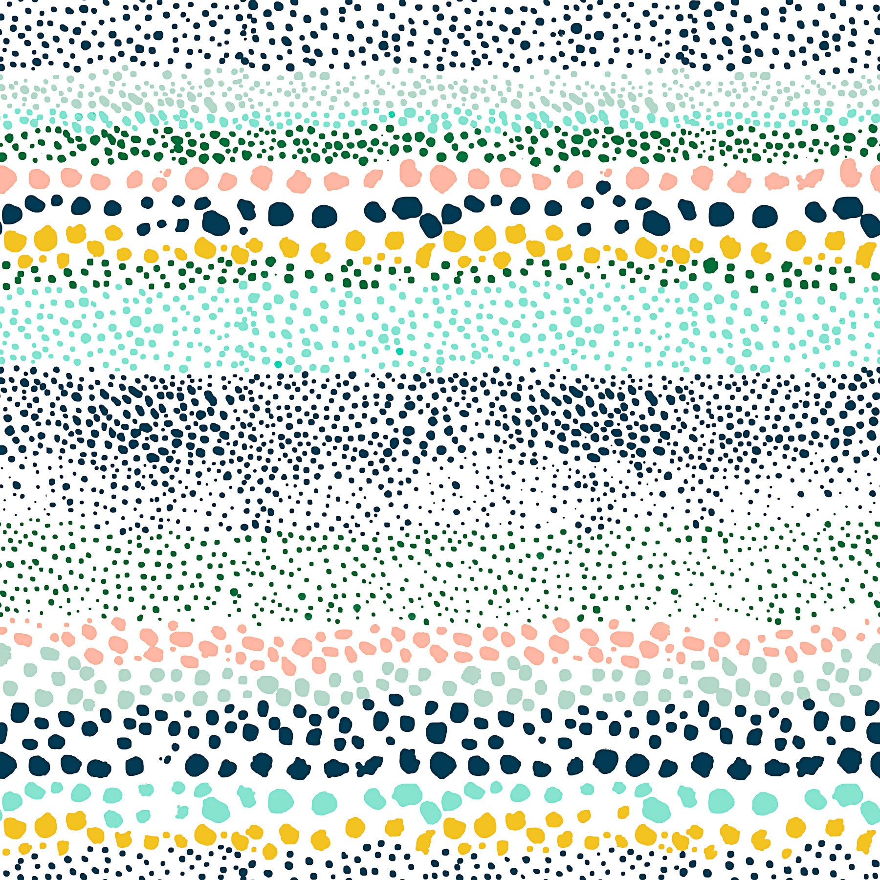 This vibrant wallpaper features a captivating arrangement of little textured dots in a geometric pattern. Horizontal bands of varying colors—from deep teal and forest green to soft peach and mint—create a visually striking gradient effect. The dots themselves boast a delightful tactile quality, suggesting a hand-painted or textured aesthetic. The overall mood is cheerful and modern, perfect for adding a playful yet sophisticated touch to any digital device. The subtle geometric organization of the color bands adds a sophisticated structure to the seemingly random distribution of dots, creating a balanced and pleasing visual rhythm. This wallpaper offers a unique blend of organic and geometric elements, making it a stylish and eye-catching choice.