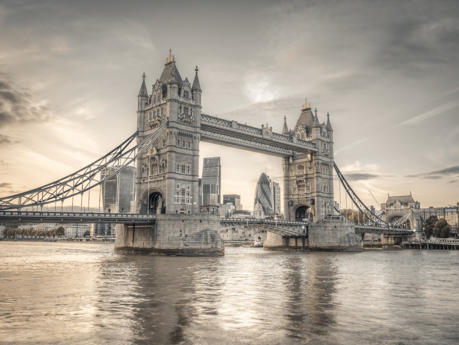 London's Tower Bridge wallpaper for an industrial style workspace.