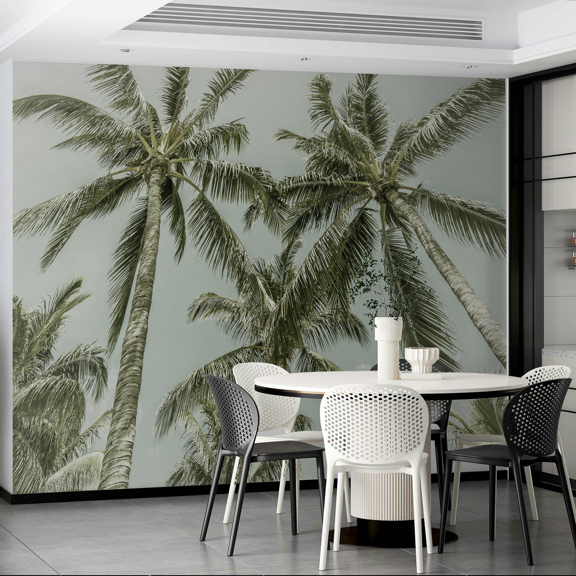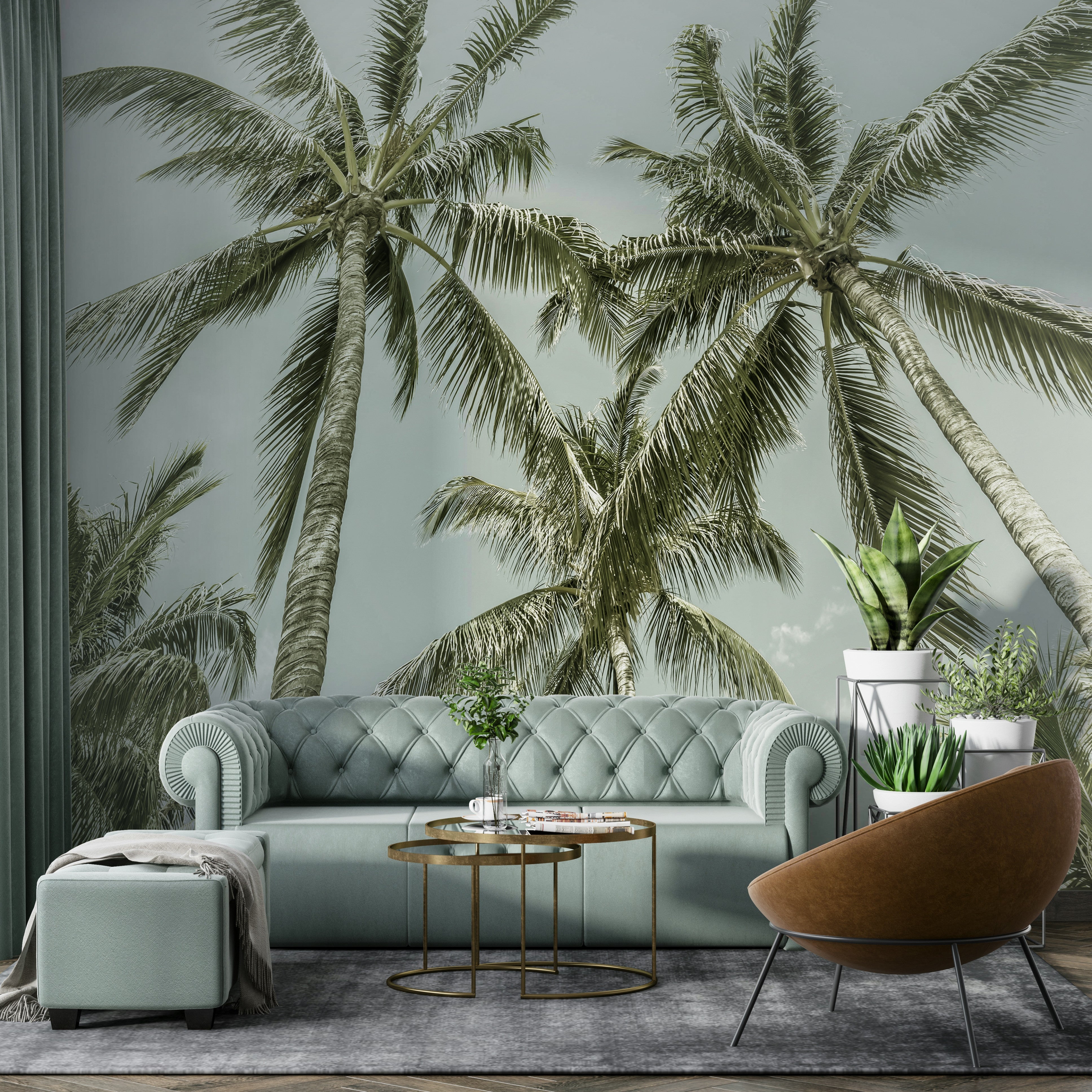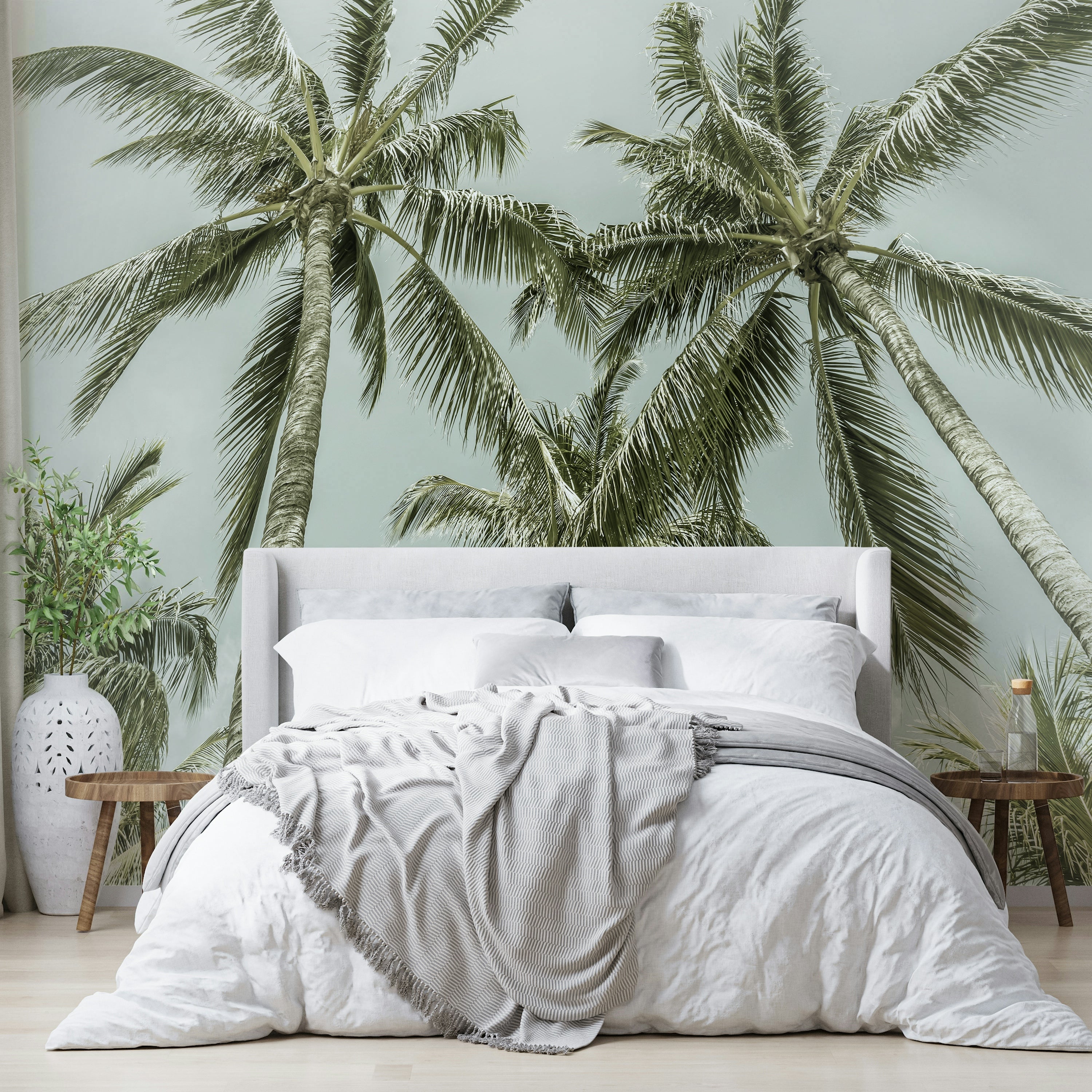 Soft tropical mural with classic palm tree art