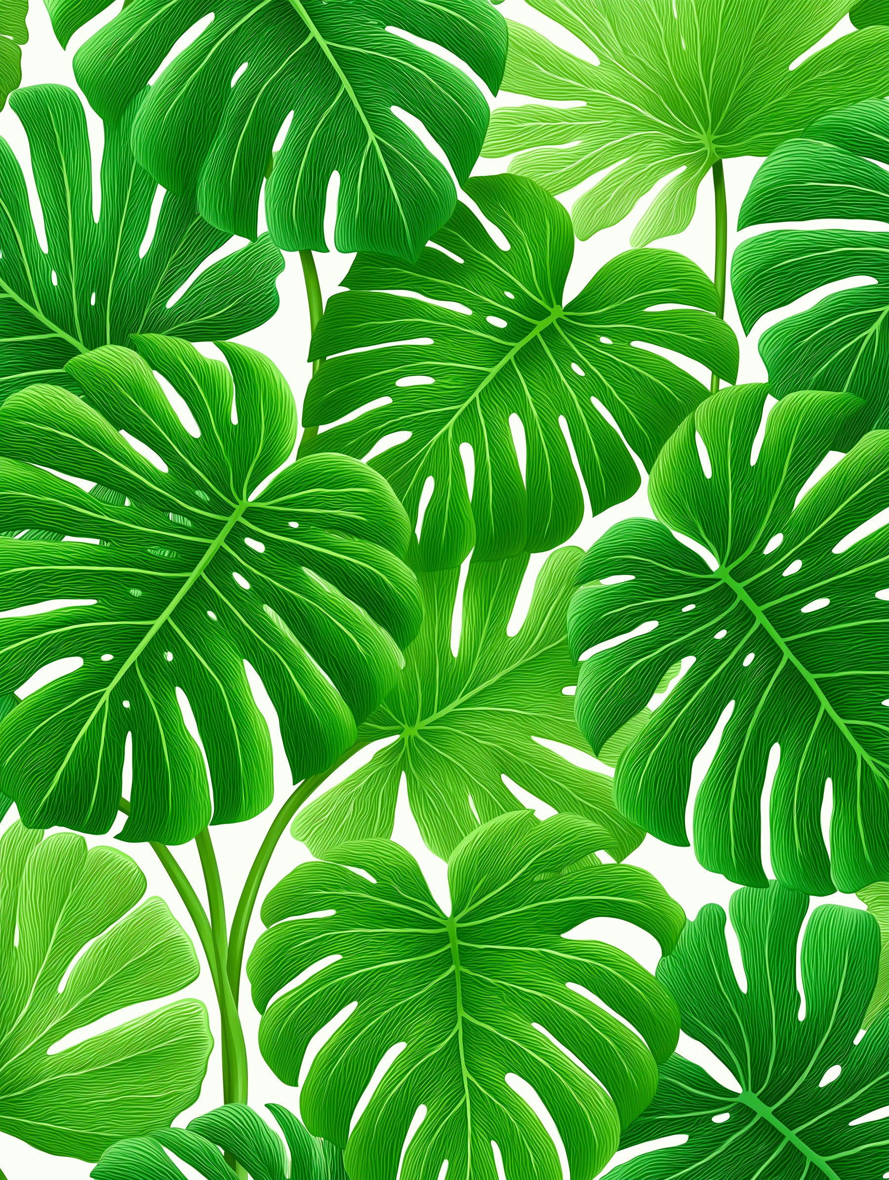 Immerse yourself in lush, green beauty with this detailed Monstera pattern. The design showcases large tropical leaves, creating a bold statement on any wall. Perfect for adding a vibrant, nature-inspired touch, this wallpaper for walls elevates bedrooms, living rooms, or even bathrooms. Its striking presence complements modern and tropical-themed interiors, bringing the feel of an exotic getaway to your everyday living space. Brighten your room with this refreshing, verdant pattern.