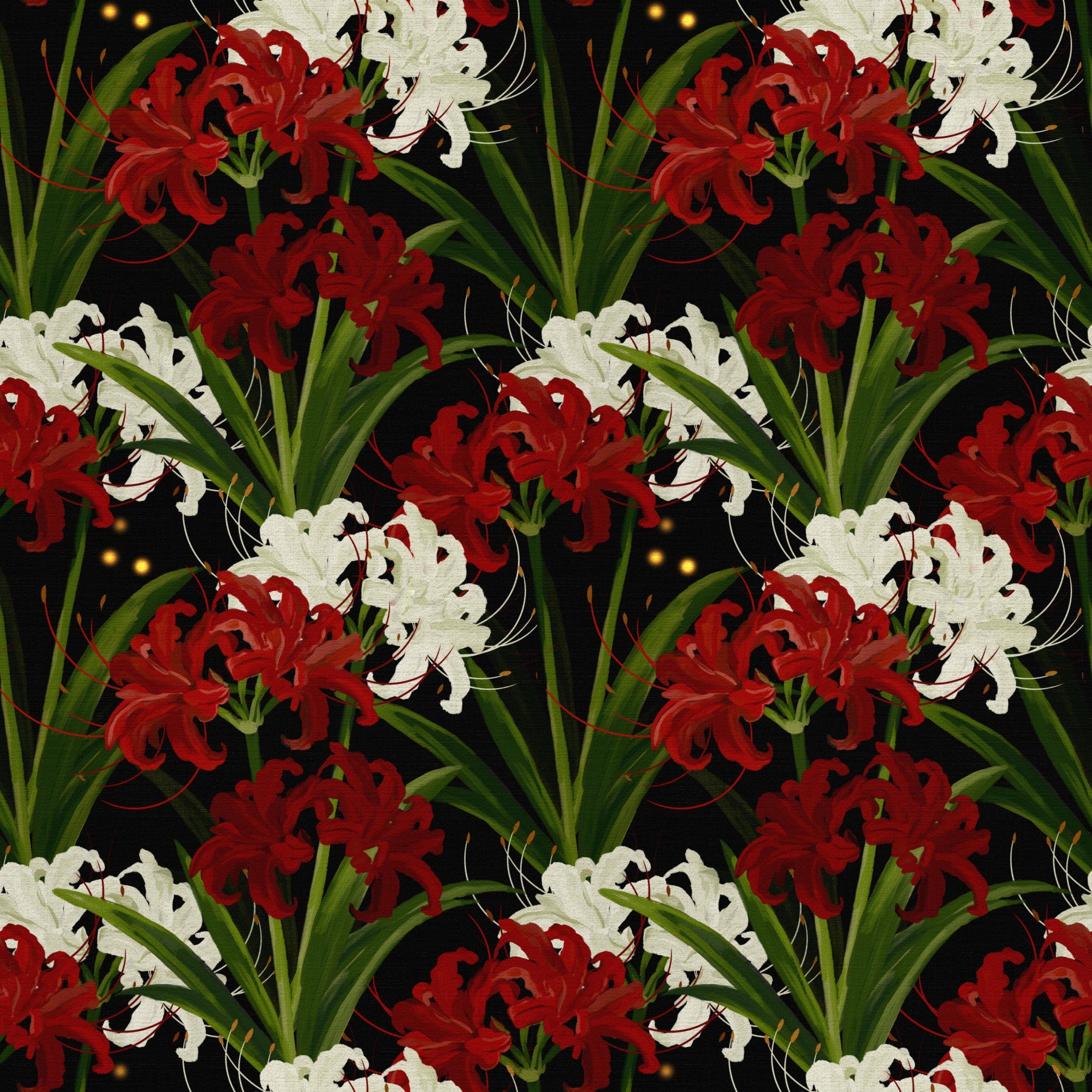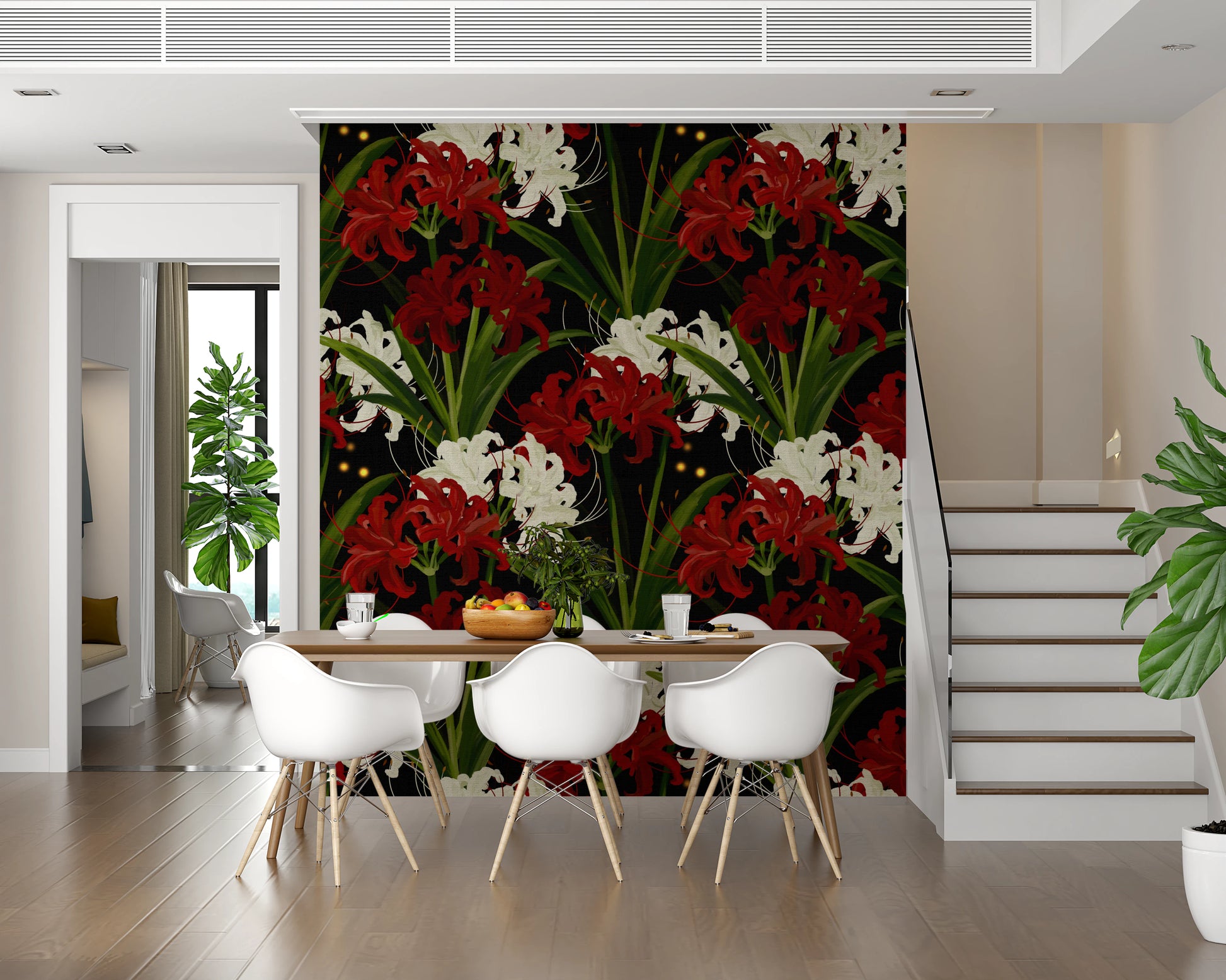Lycoris Noir Midnight Romance white red flowers bloom Wall Mural