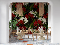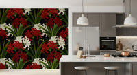 Transform your space with Lycoris Noir wallpaper for walls, a striking floral design that brings drama and elegance. This wallpaper showcases vibrant red and white spider lilies against a rich, dark background, creating a captivating contrast. The painterly style adds depth and texture, lending an artistic touch to any room. Ideal for living rooms, bedrooms, or dining areas, this wallpaper enhances interiors with a sophisticated and bold aesthetic. Use it to create a feature wall or wrap the entire room for an immersive floral experience.
