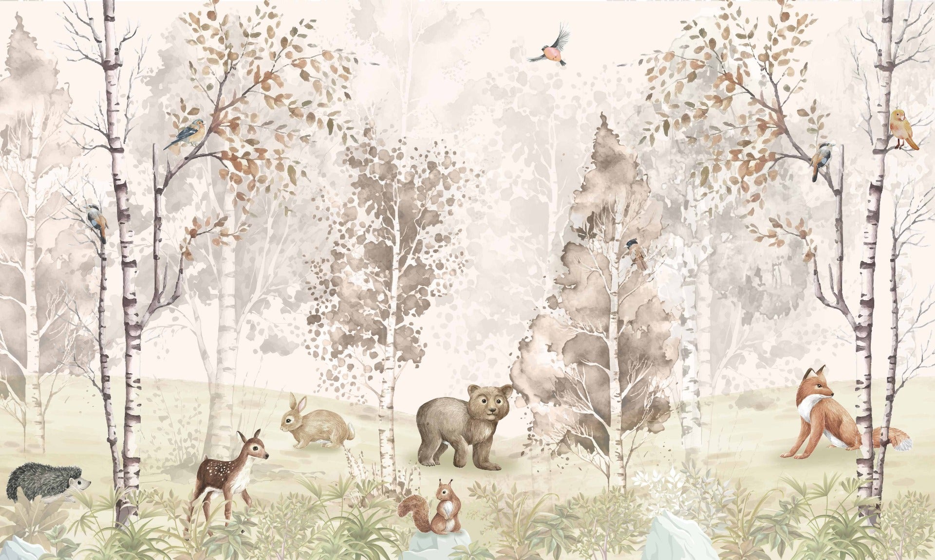 Discover the enchantment of our whimsical Menagerie woodland nursery wallpaper. Every element of this wallpaper combines to create a calming, interactive space in your nursery. It features a range of woodland animals set in a slender sketch form against muted colour and foliage backgrounds. At the same time, this nursery wallpaper design is more than a stunning background for narrating stories or dreaming with: it represents a highly reliable and attractive option through which a stylistically functional place will be designed. It combines excellent aesthetic sense, creates peace, and encourages fun and jubilant scenarios, allowing young people to excel and grow further in such ambience. It is made with easy, non-complicated cleaning/maintenance procedures.
