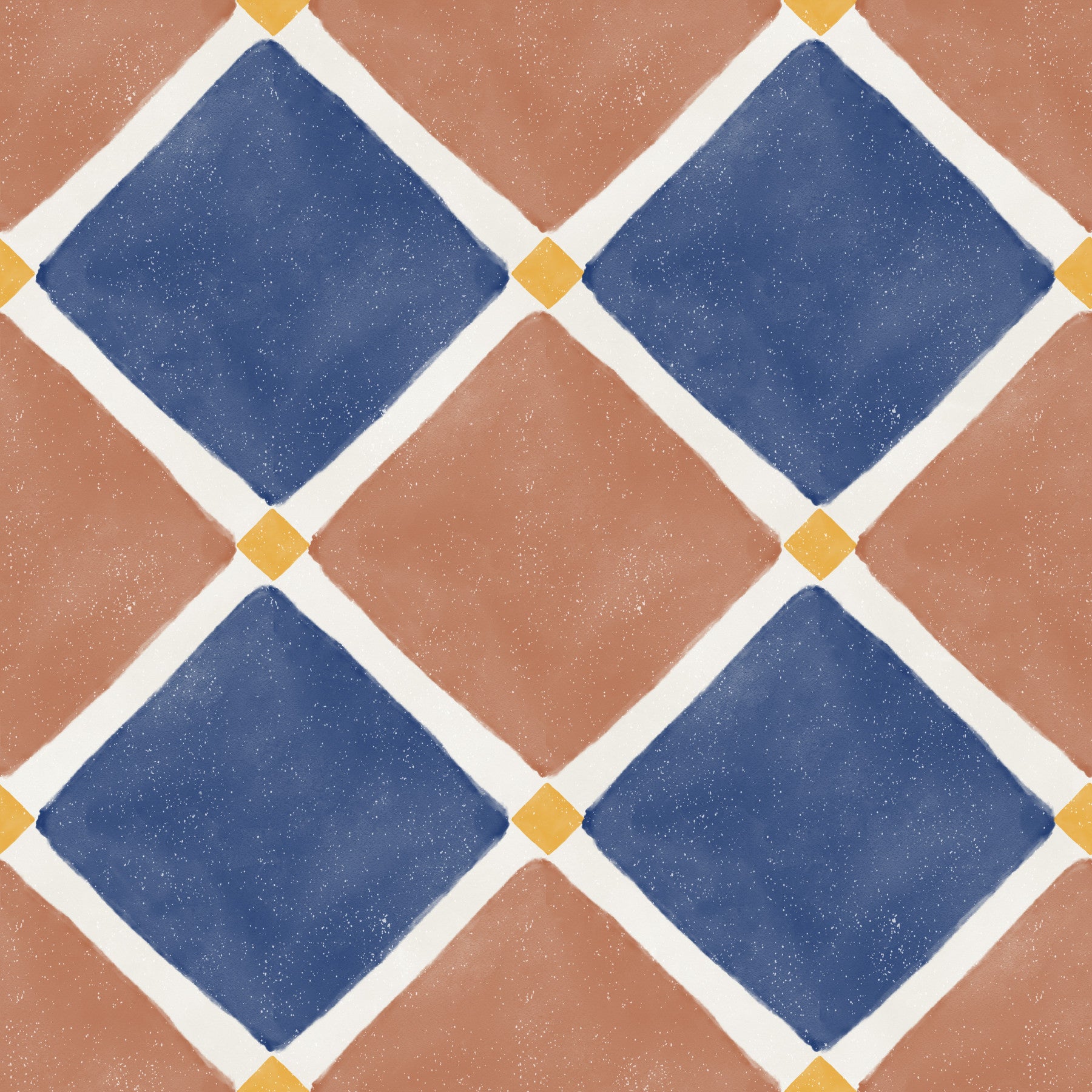 Mediterranean Rustic Checkerboard Aged Decoration - Terracotta - Blue Wallpaper⁠