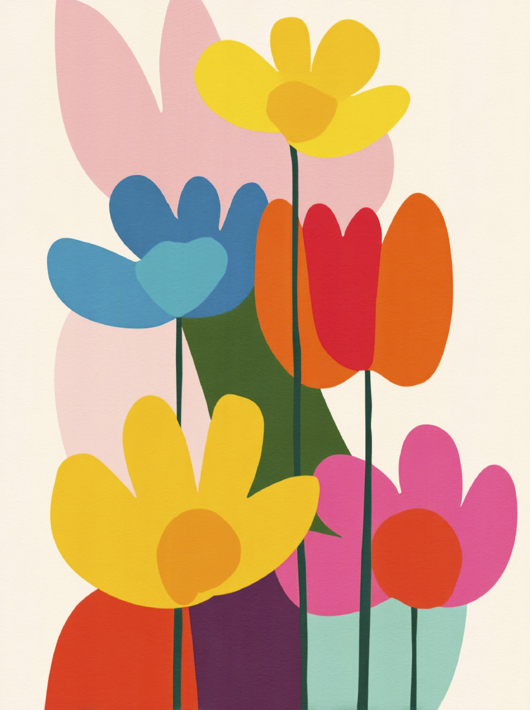 Playful vintage blooms in bold geometric composition