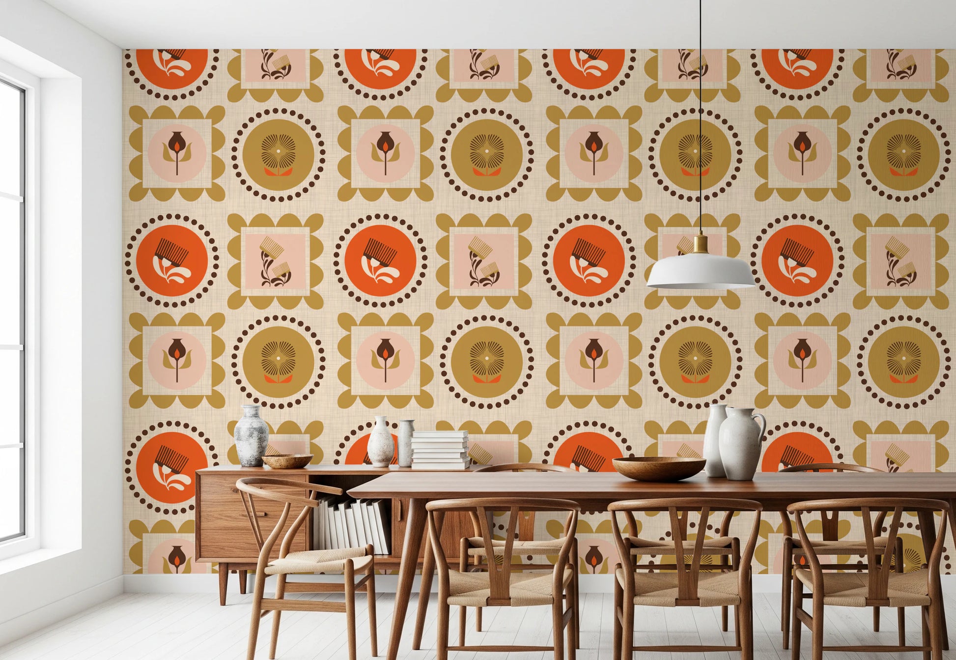 Embrace a touch of vintage charm with this Mid-Mod Wildflower Frames design. A delightful botanical collage, it features stylized wildflower motifs encased in geometric frames, creating a captivating retro aesthetic. The color palette emphasizes warm terracotta and rich ocher tones, lending a cozy and inviting feel to any room. Perfect for adding a unique and artistic flair, this design is ideal for creating a statement wall or a subtle, yet stylish backdrop. Evoke the spirit of the mid-century era with this timeless and elegant piece of wall décor.