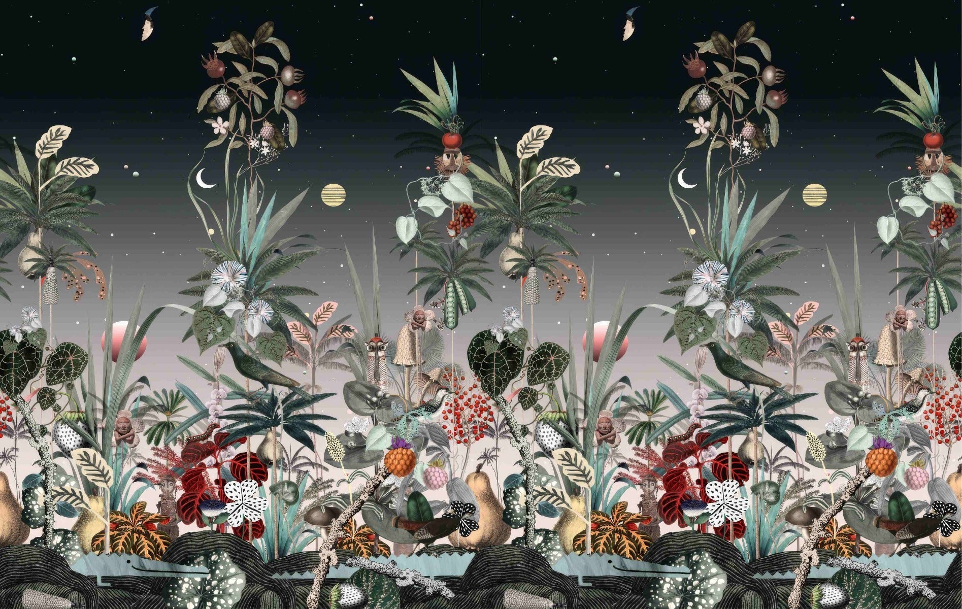 This midnight botanic nursery wallpaper is a serene background containing a lavish arrangement of nocturnal botanicals it immediately changes any room's feel. This luxurious arrangement of nocturnal botanicals combines several playful elements to create a captivating visual experience for your little one's imagination. Perfect for creating a nurturing environment, this mural has been made with a significant focus on detail and quality. This wallpaper keeps the room engaging and soothing yet active for stories during the mornings and cuddles at nighttime. The sophisticated design and different colours are stimuli in developing senses to make every day an adventure at home.