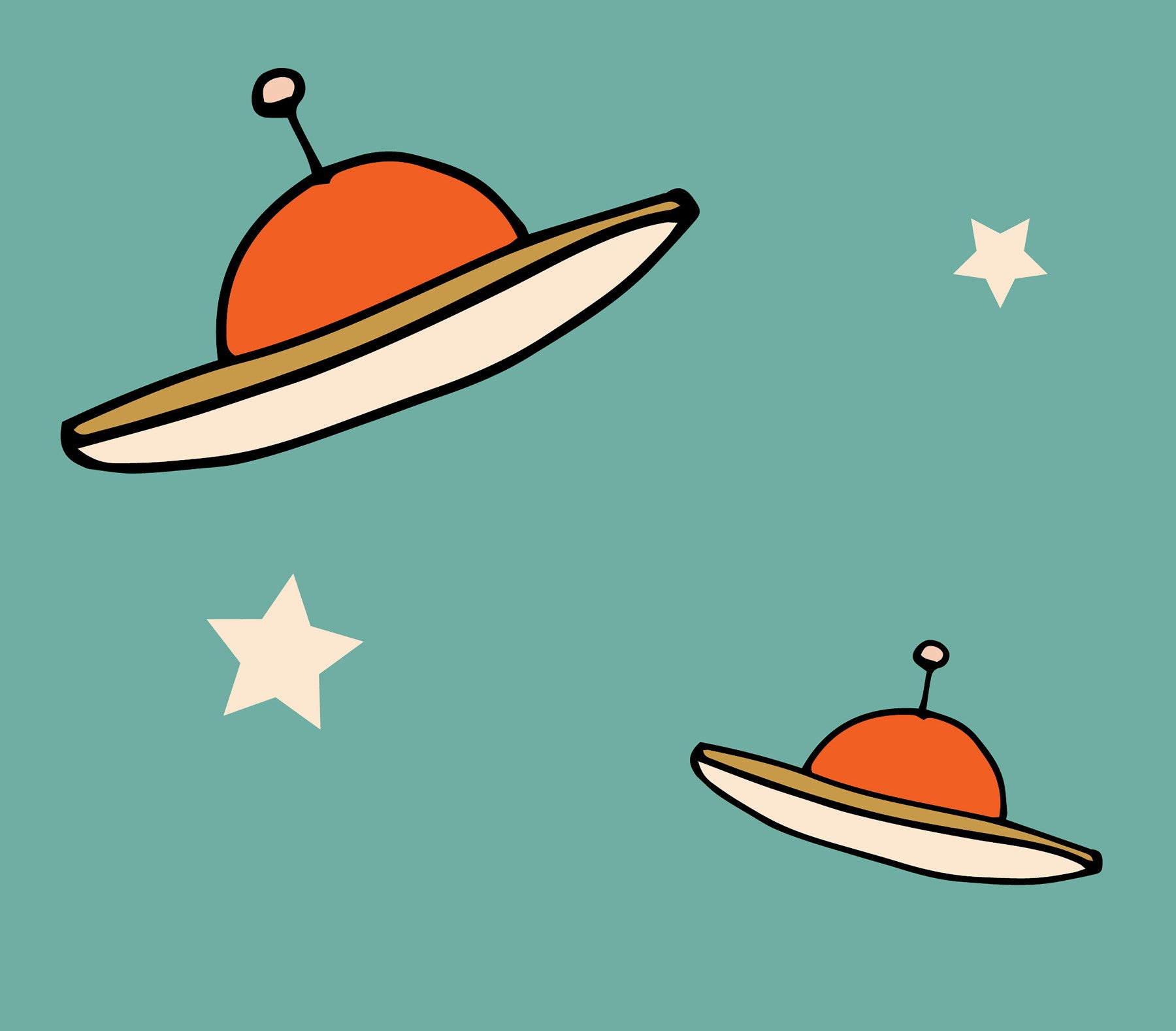 Whimsical wallpaper featuring Minimal Vintage UFO Mustard.