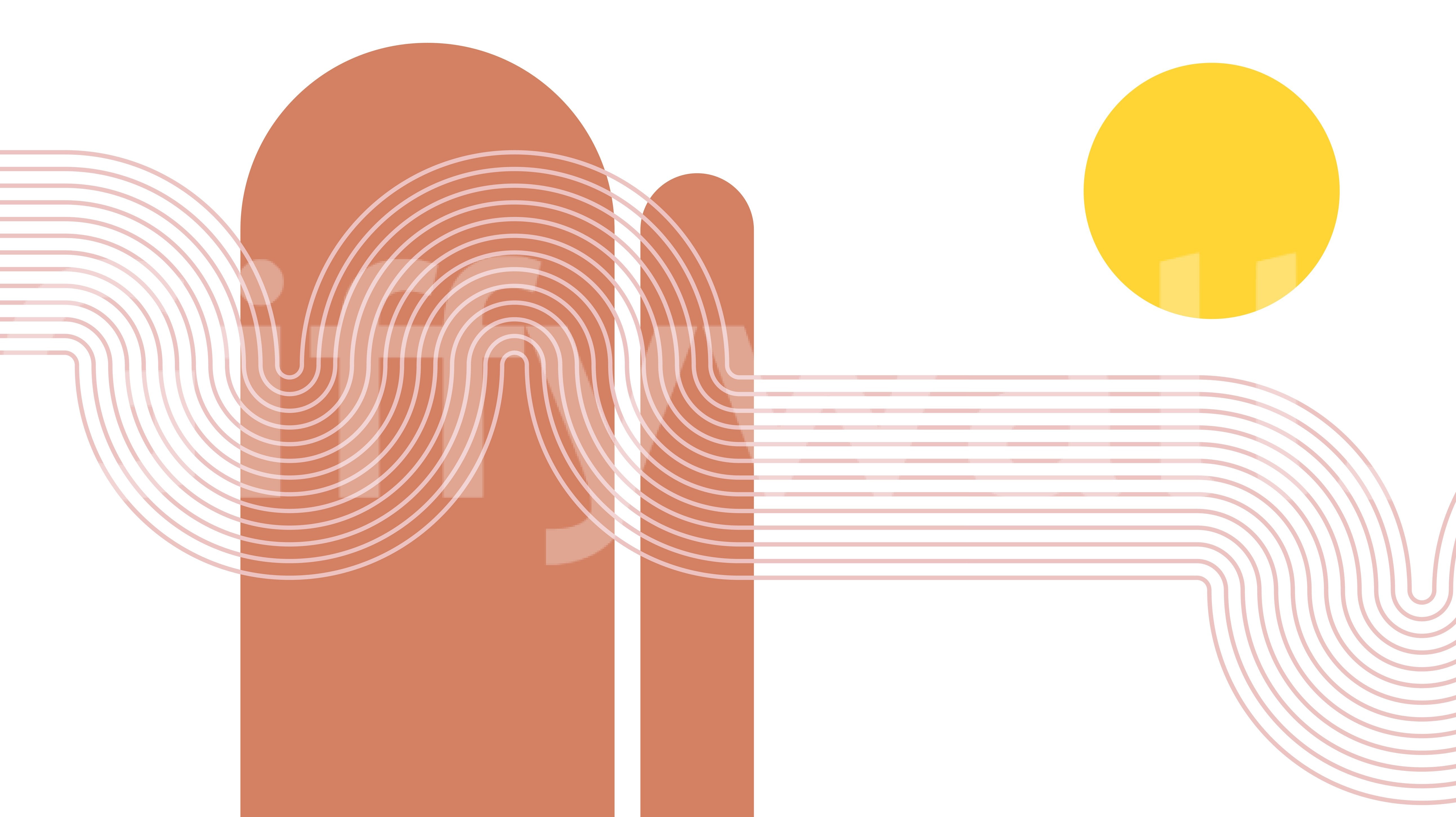 Embrace serenity with this minimalist boho wallpaper. Earthy terracotta shapes, reminiscent of desert landscapes, are elegantly intertwined with soft blush pink lines creating a flowing, organic rhythm. A vibrant yellow sun adds a cheerful pop of color, contrasting beautifully against the muted tones. This design offers a peaceful and stylish aesthetic, perfectly capturing the essence of calm and understated bohemian charm. Ideal for creating a tranquil atmosphere in your space.