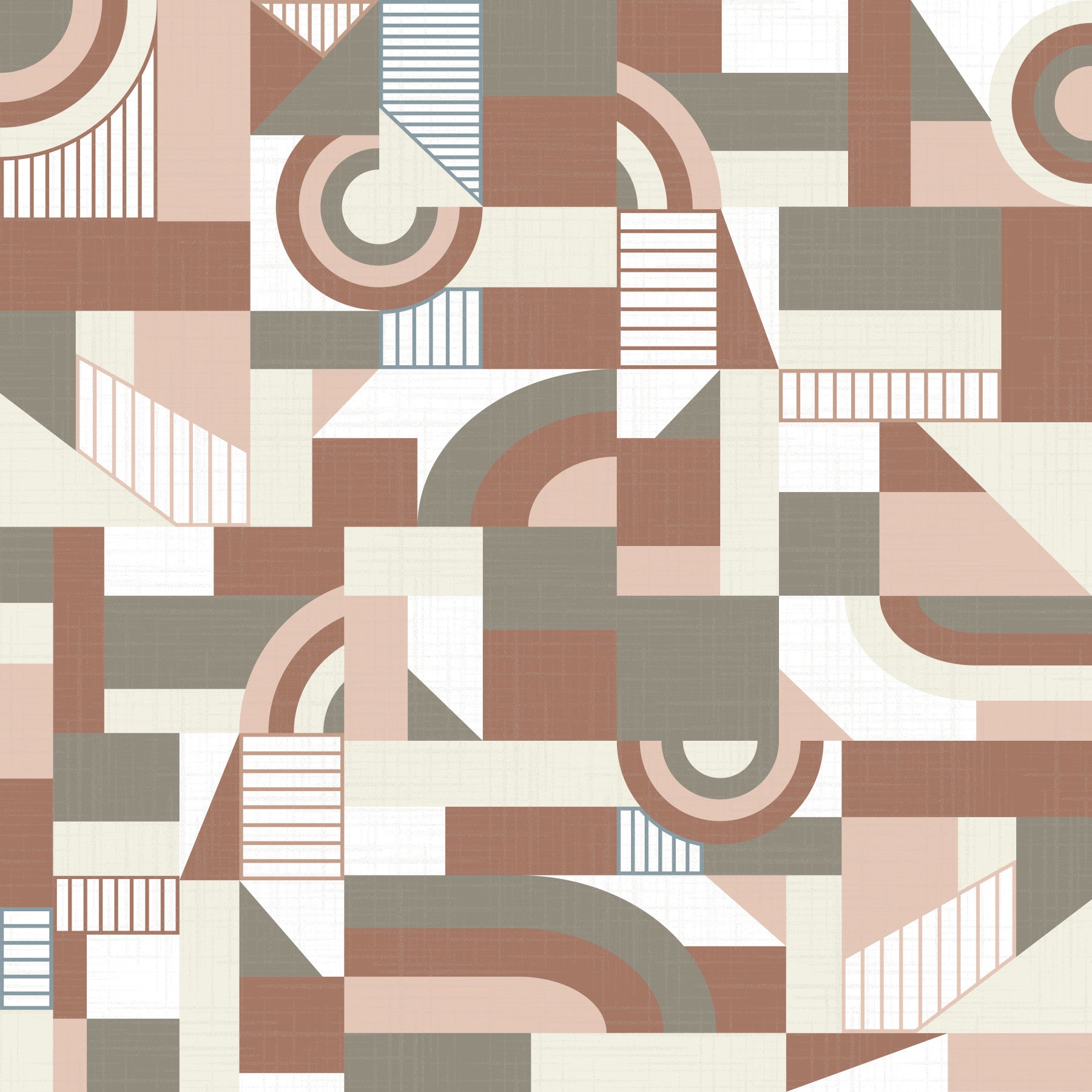 Indulge your senses with Mocha Mousse Solfeggio a wallpaper that translates the richness of a decadent dessert into a visual symphony. This design features a harmonious blend of geometric shapes in a muted palette of mocha browns, creamy beiges, and soft blush tones, reminiscent of swirling layers in a delicate mousse. The solfeggio aspect comes alive in the rhythmic arrangement of circles, rectangles, and linear elements, creating a soothing and balanced visual composition. Subtle textural details add depth and intrigue, evoking the fine grain of artisanal paper or the tactile quality of finely woven fabric. Perfect for creating a calming and sophisticated atmosphere in any room, 'Mocha Mousse Solfeggio' offers a unique combination of modern design and timeless elegance. It is more than just a backdrop; it's an experience, a visual melody for your walls.