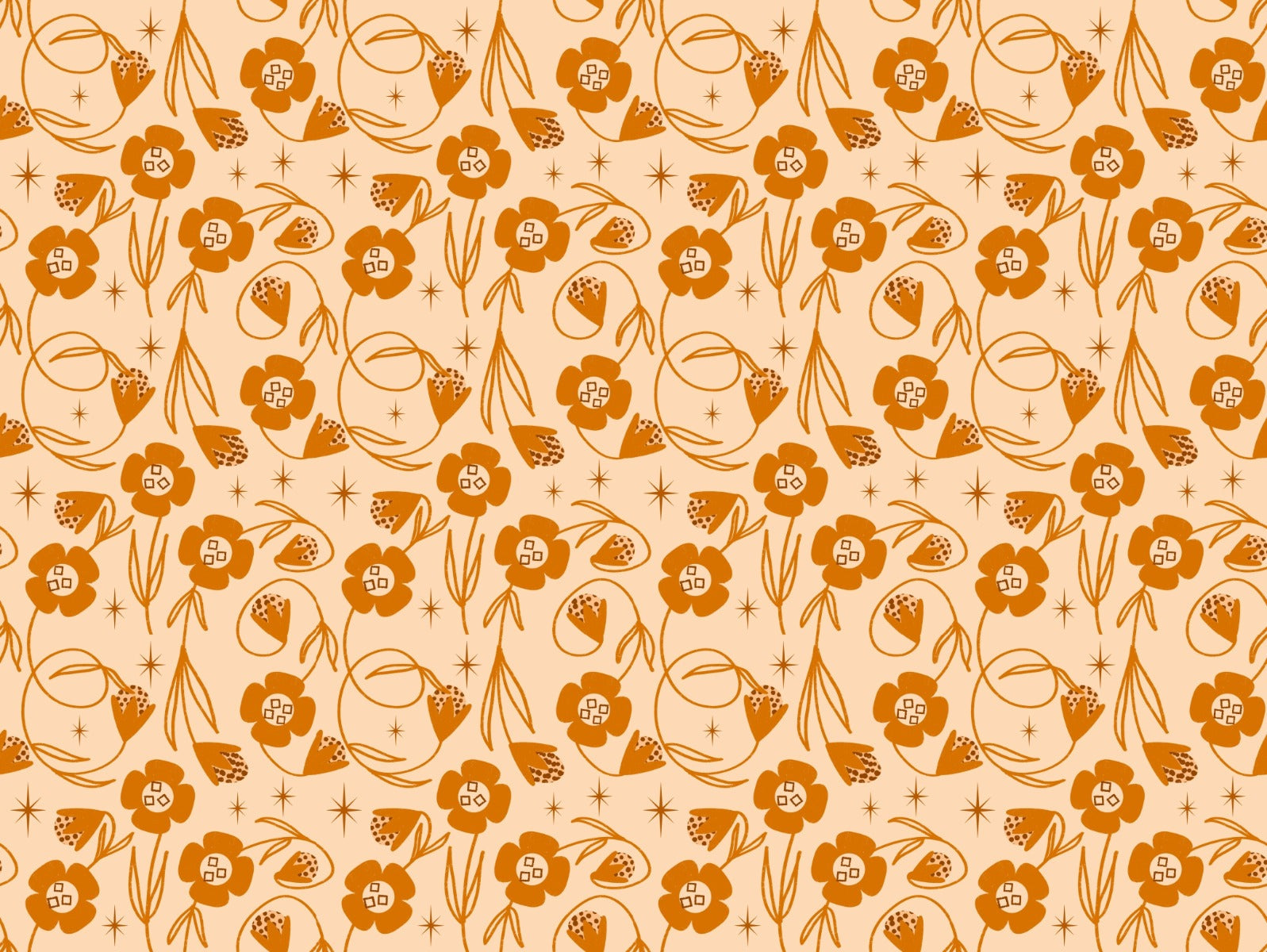 Orange floral wallpaper with peach tones