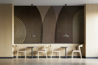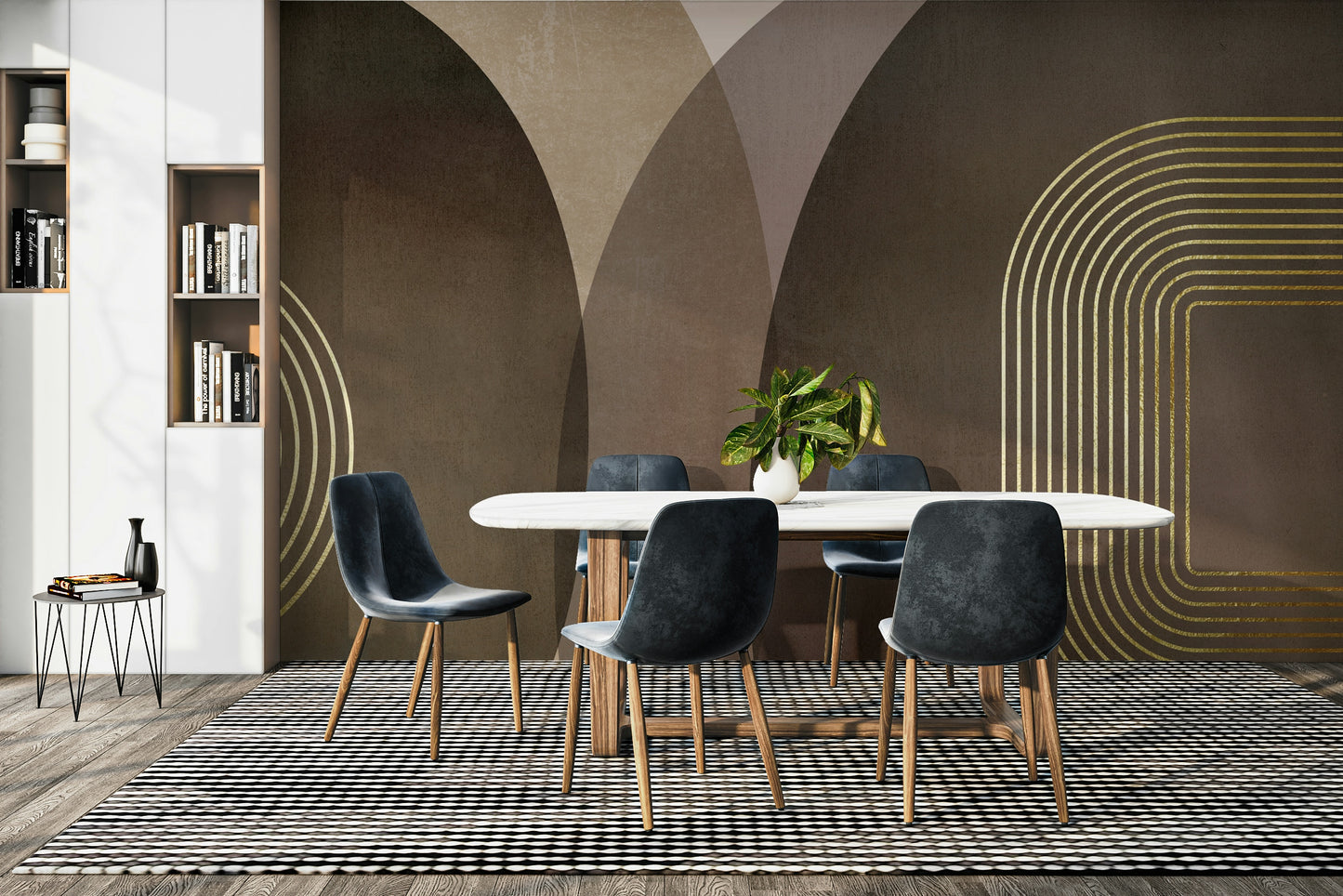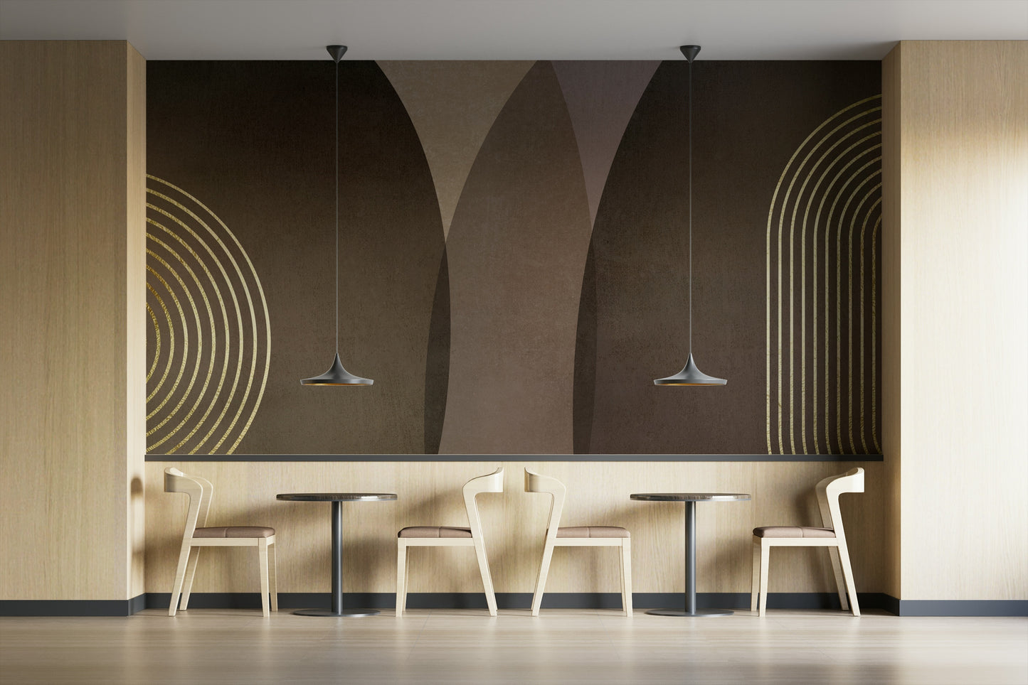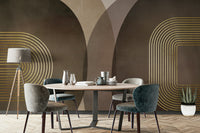 Bring a bold vibe to your room with this Modern Mid Century Rustic Wallpaper. Featuring soft earth tones, overlapping shapes, and gold geometric lines, it adds a stylish twist to classic mid-century charm. Perfect for living rooms, bedrooms, or creative spaces, this design balances vintage warmth with a sleek, modern look. Its textured background and retro curves create depth and interest on any wall. Whether you want a cozy touch or a standout accent wall, this wallpaper fits both. Ideal for those who love modern rustic design and mid-century wallpaper, it gives your space a fresh and timeless feel.