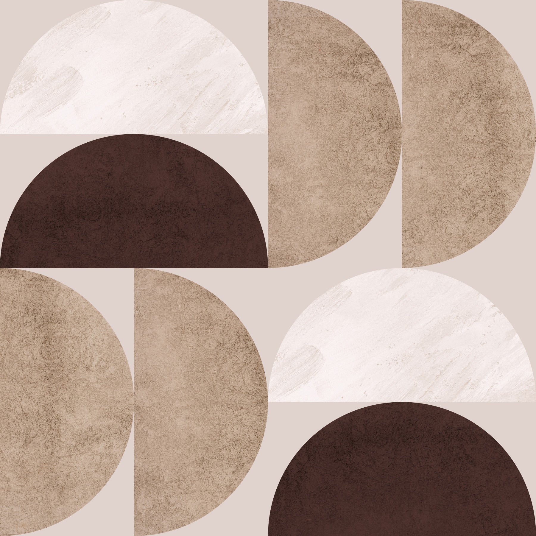 Embrace mid-century modern design with this stunning wallpaper. The abstract pattern features a series of textured semicircles in a palette of warm, neutral colors. Beige, brown, and off-white hues create a balanced and sophisticated look, while the subtle textural elements add depth and visual richness. This wallpaper is perfect for adding a touch of vintage charm to contemporary spaces. Its versatility allows for seamless integration into various room settings, from living rooms and bedrooms to hallways and home offices. The clean lines and earthy tones bring a sense of calm and elegance to any environment, perfect for those seeking a timeless and stylish design.