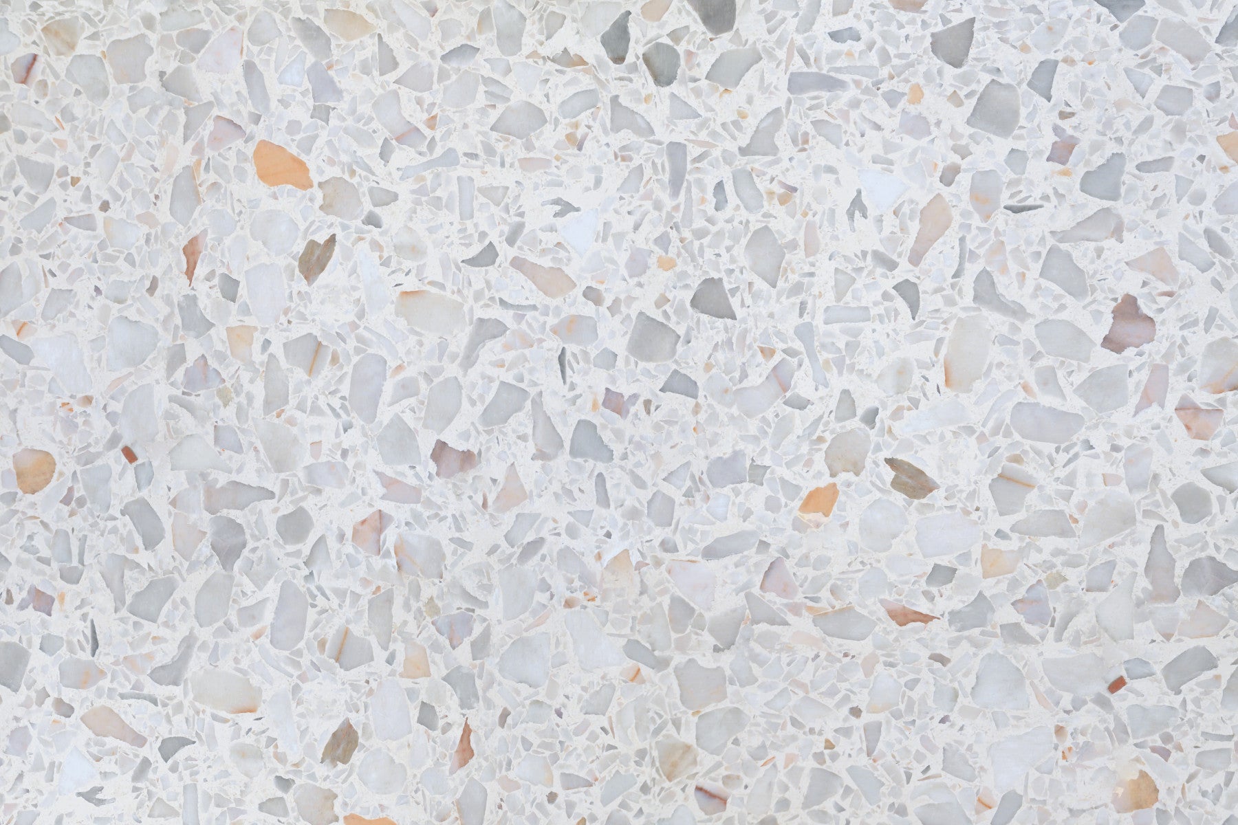 Minimalist Terrazzo wall mural, smooth appearance, soft hints of apricot.