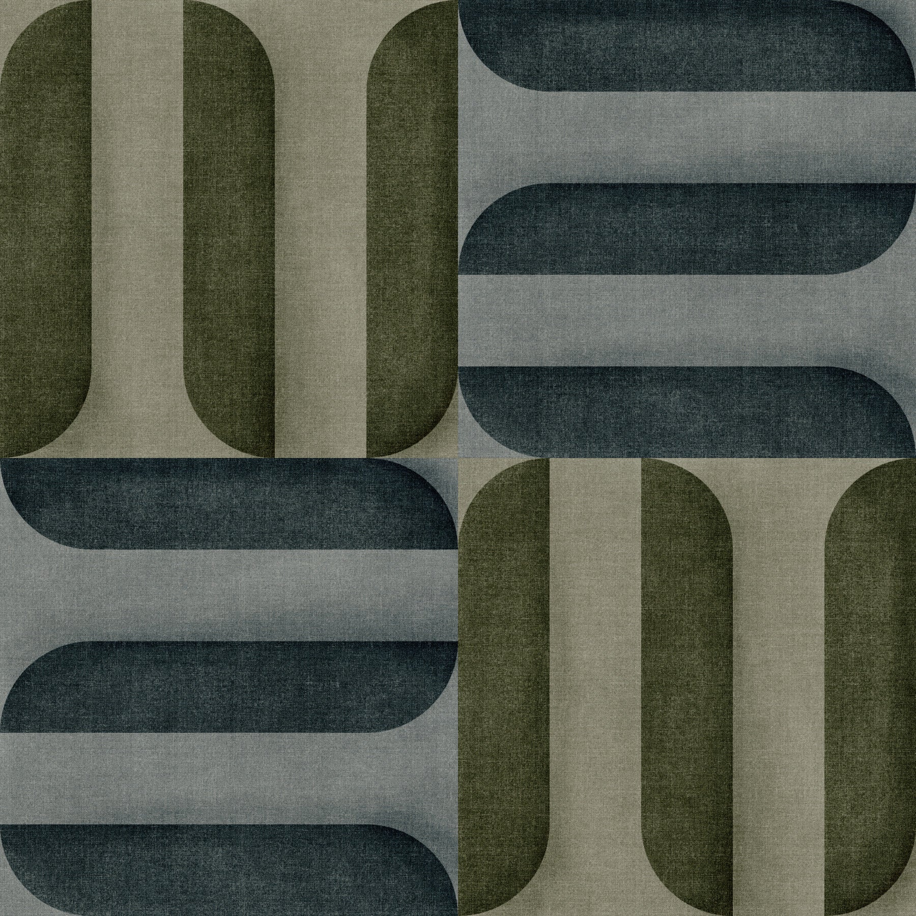 Embrace the serene sophistication of winter with the "Modern Textured Signs Winter" wall décor. This design presents a contemporary geometric arrangement of rounded, sign-like forms, carefully textured to evoke the tactile feel of woven fabric. The interplay of cool, muted tones – calming greys, deep blues, and subtle earthy greens – mimics the quiet beauty of a winter landscape. Each color variation flows seamlessly into the next, creating a harmonious and balanced visual rhythm. The textural quality invites closer inspection, adding depth and interest to any space. The repeating pattern offers both a sense of order and subtle visual complexity, suitable for creating a focal point or adding a touch of modern artistry to your interior. Transform your room into a haven of modern tranquility with this unique and stylish wall covering.