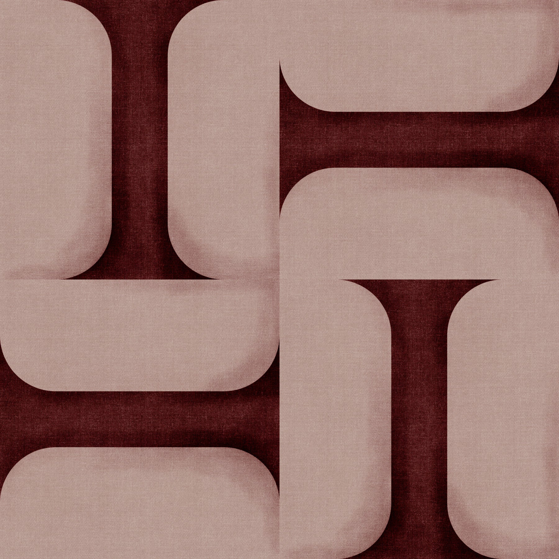 Indulge your space with the sophisticated allure of 'Modern Textured Tiles Wine.' This wall covering showcases a captivating geometric pattern composed of interlocking forms, textured to resemble fine fabric. A deep, inviting wine hue contrasts elegantly with a softer, blush tone, creating a visually intriguing depth and warmth. The rounded edges of the shapes lend a contemporary, approachable feel, perfect for elevating any room with a touch of refined modernism. This design brings the rich essence of a fine wine cellar into your home, offering a subtle yet impactful statement that exudes style and character. Transform your walls into a work of art with this bold and unique wall accent.