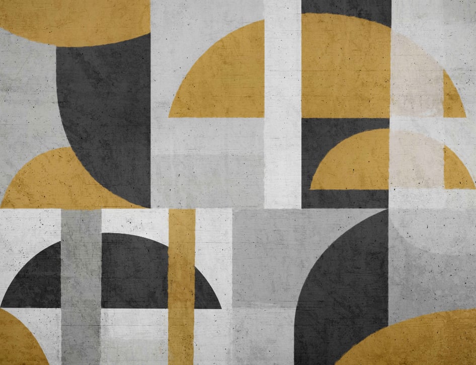 Yellow and grey geometric mural design