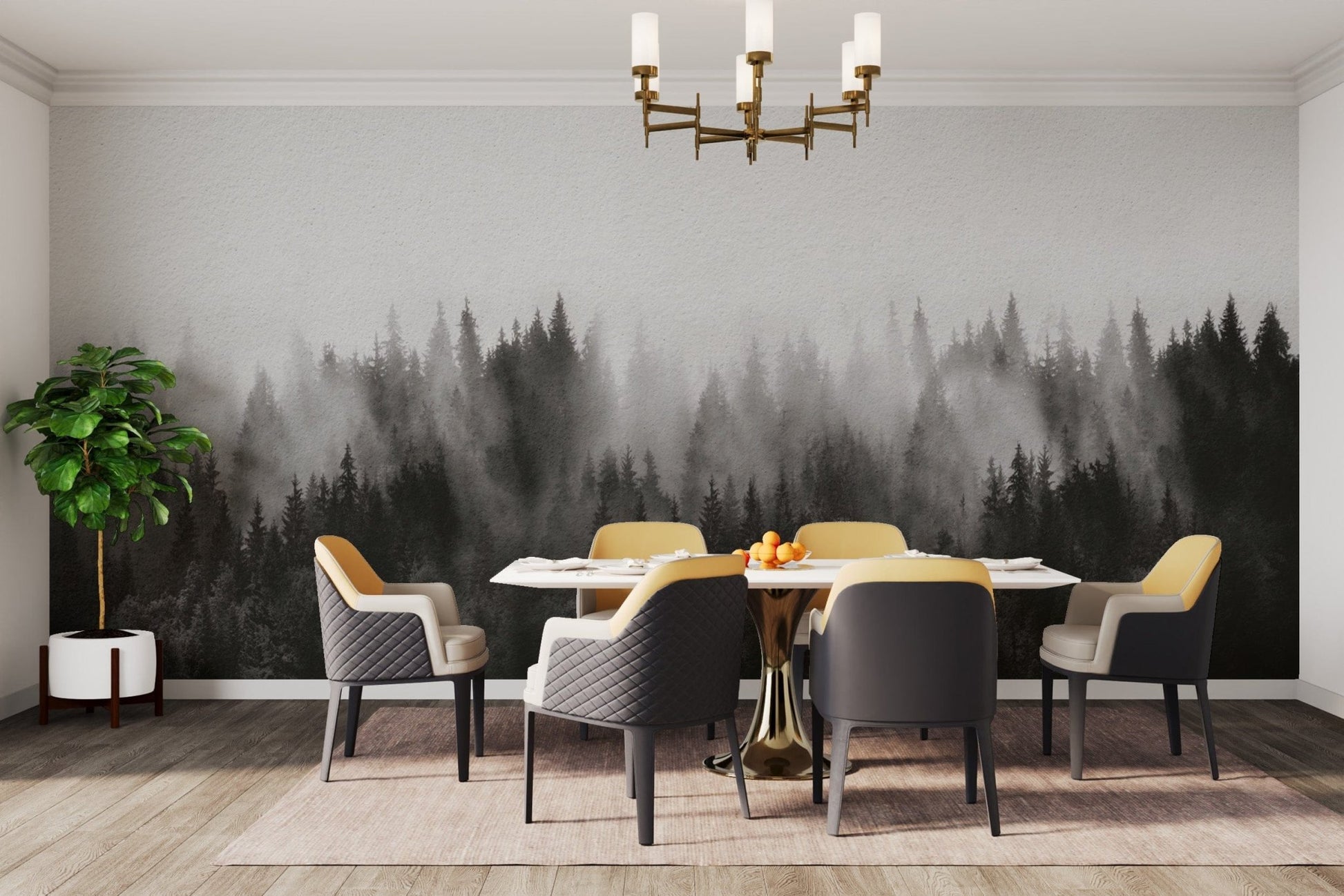 Create a bold statement with the Monochrome Misty Forest Wallpaper, featuring a captivating blend of fog and dense woodland scenery. This tropical wallpaper embraces a minimalist yet dramatic aesthetic, perfect for modern interiors seeking a nature-inspired touch. The grayscale tones highlight the depth of mist-covered trees, adding a sense of mystery and serenity to bedrooms, living spaces, or offices. Crafted from premium materials, this wallpaper delivers durability and a seamless finish. Ideal for those who appreciate nature's raw beauty, this tropical wallpaper brings an atmospheric forest scene indoors, setting a calming yet striking backdrop for any space.