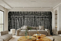Monochrome Reflection of Trees in Serene Waters Wall Mural