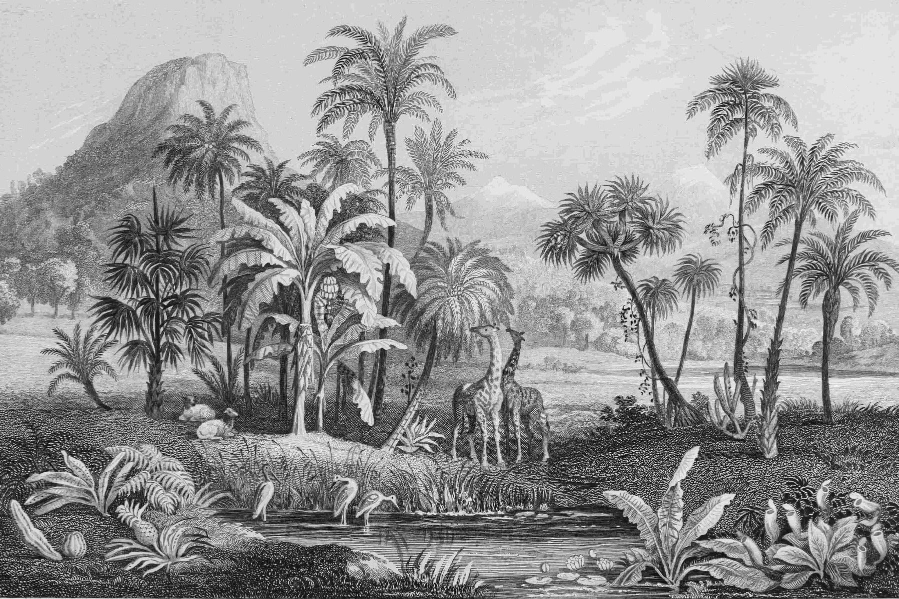 Monochrome Vintage Jungle Mural