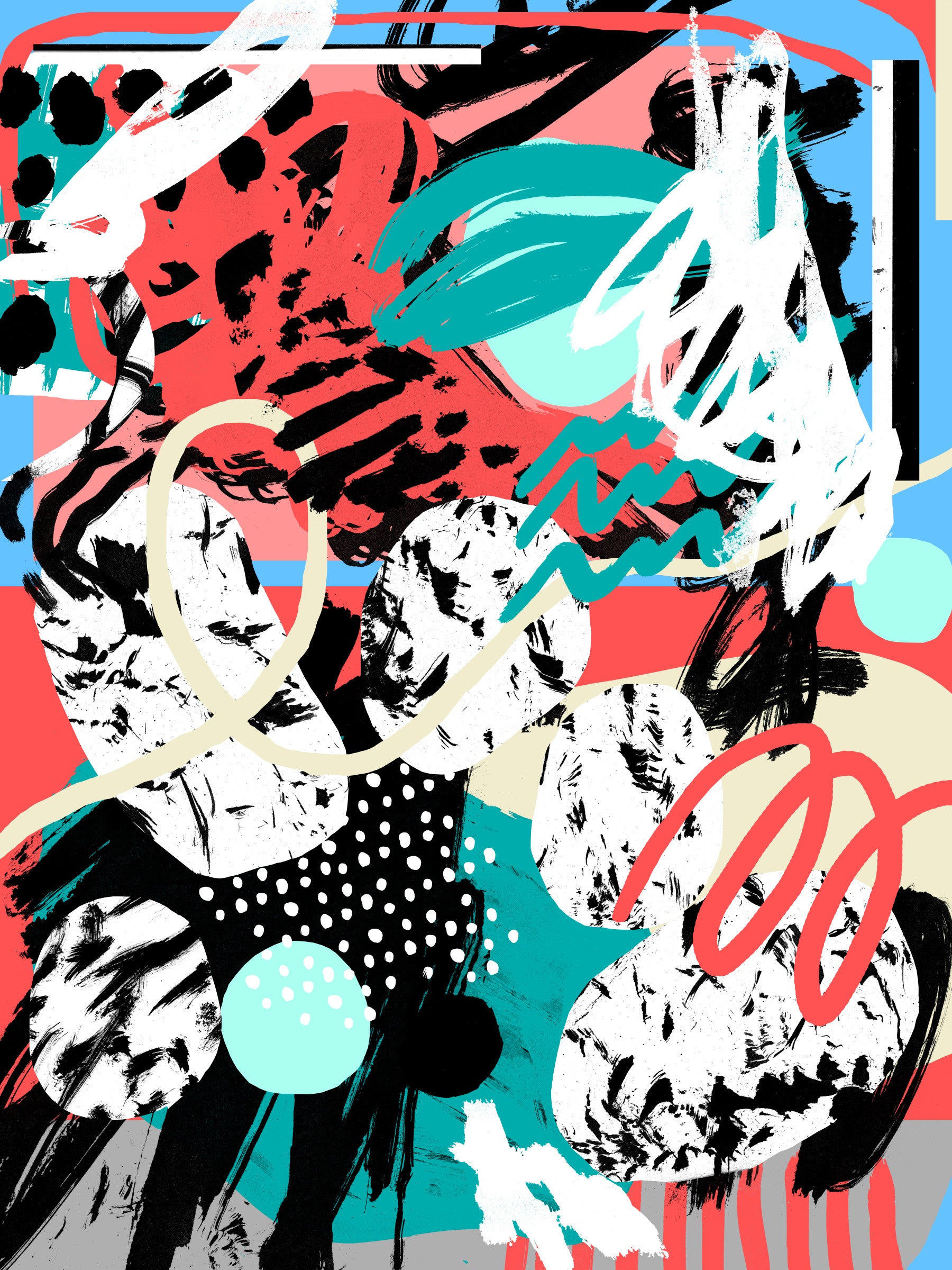 Evoking the cyclical nature of the moon, this abstract wallpaper, titled Moon Phase presents a dynamic interplay of shapes and colors. Textured brushstrokes create lunar-like orbs scattered across the canvas, embodying the moon in various stages. Hues of coral, teal, black, and white intermingle, mirroring the spectrum of light and shadow that dance across the lunar surface. The design is a vibrant, modern interpretation of celestial rhythms, perfect for adding a touch of artistic energy to any space. Bold lines and whimsical patterns suggest the ever-changing energy of the moon, making it an ideal choice for those who seek a visually stimulating and aesthetically pleasing backdrop.