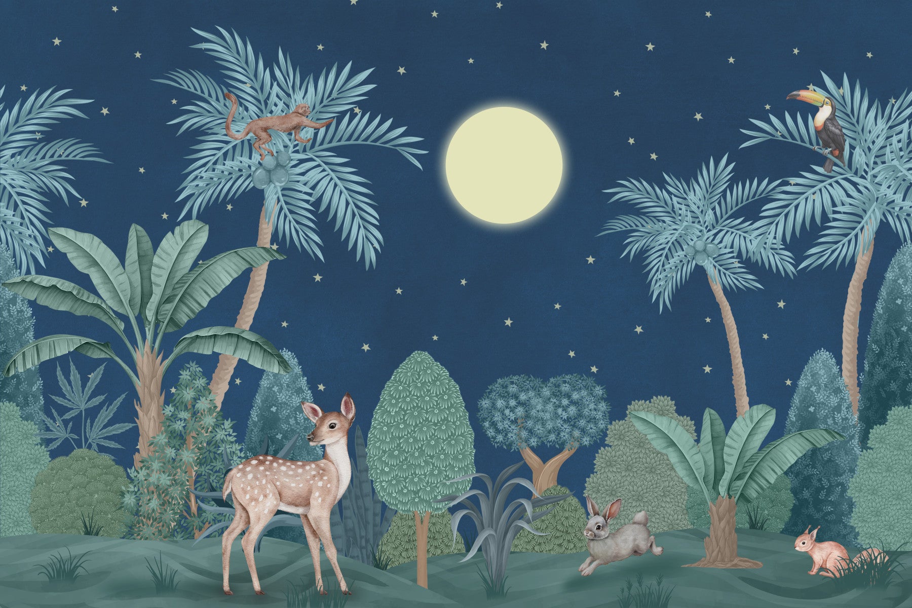 Atmospheric Moonlit Jungle wallpaper for a dramatic feature wall.