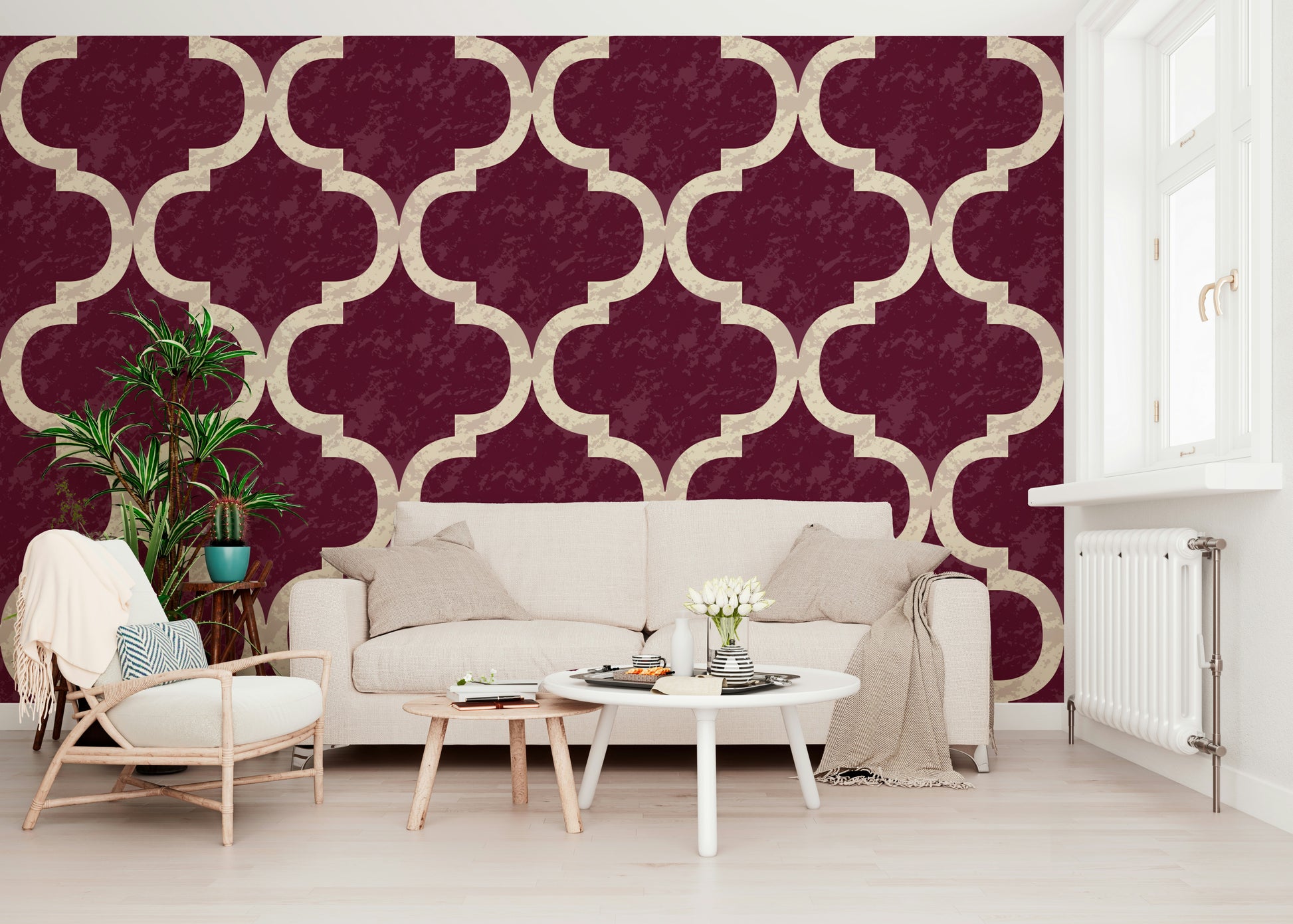Indulge in the rich warmth of 'Moroccan Ogee - Cabernet Red', a wallpaper design that evokes the opulent ambiance of a Moroccan riad. The deep cabernet red backdrop, infused with subtle textures, creates a sophisticated and inviting atmosphere. Interlocking ogee patterns, rendered in a soft, contrasting hue, add a layer of intricate detail and visual interest. This wallpaper is not just a design; it's a statement, bringing a touch of exotic elegance to any space. The distressed texture gives it a vintage feel, while the bold color palette makes it modern and chic. Perfect for creating a focal point in your living room, bedroom, or study, 'Moroccan Ogee - Cabernet Red' is a luxurious and stylish choice for those seeking to add a touch of global flair to their home décor. Elevate your space with this timeless and captivating design.