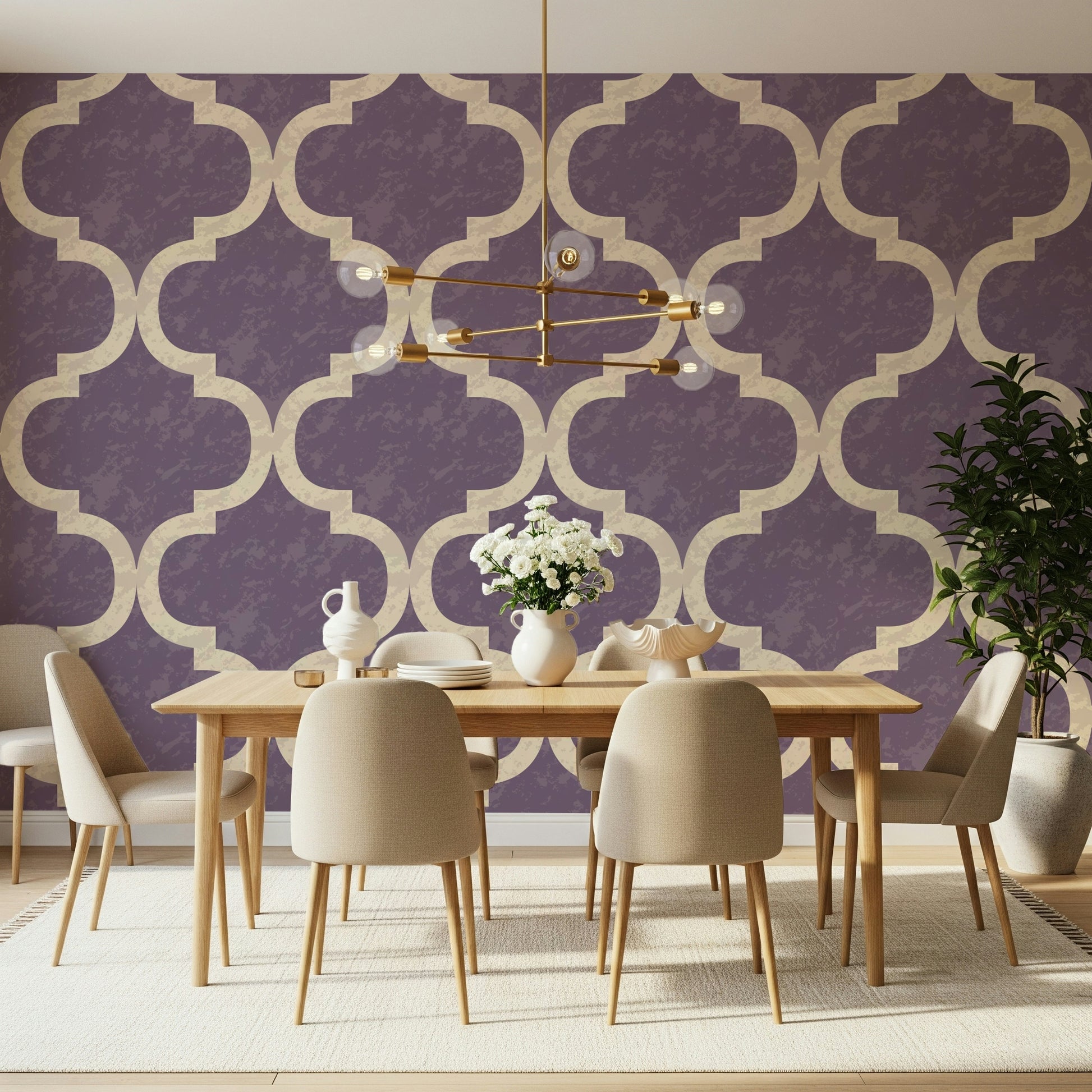 Moroccan Ogee - Grey Purple Wallpaper⁠