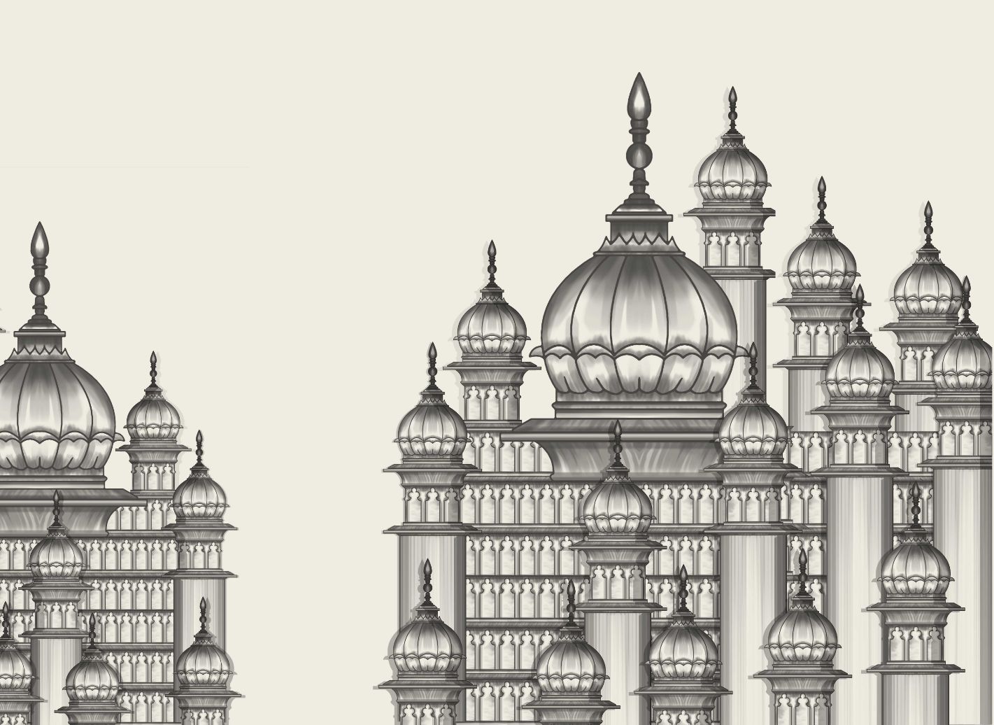 Delve into the majesty of Mughal architecture through this illustrated mural wallpaper, which boasts rich, ornate detailing and historical weight. The rich colours and detailed patterns also make up a sophisticated and graceful background; therefore, it's ideal for decorating living rooms. This wallpaper is not just decorative; it is an artwork that combines history and modern design into a dramatic visual experience. Give your home a touch that transforms old elegance into modern classicism.
