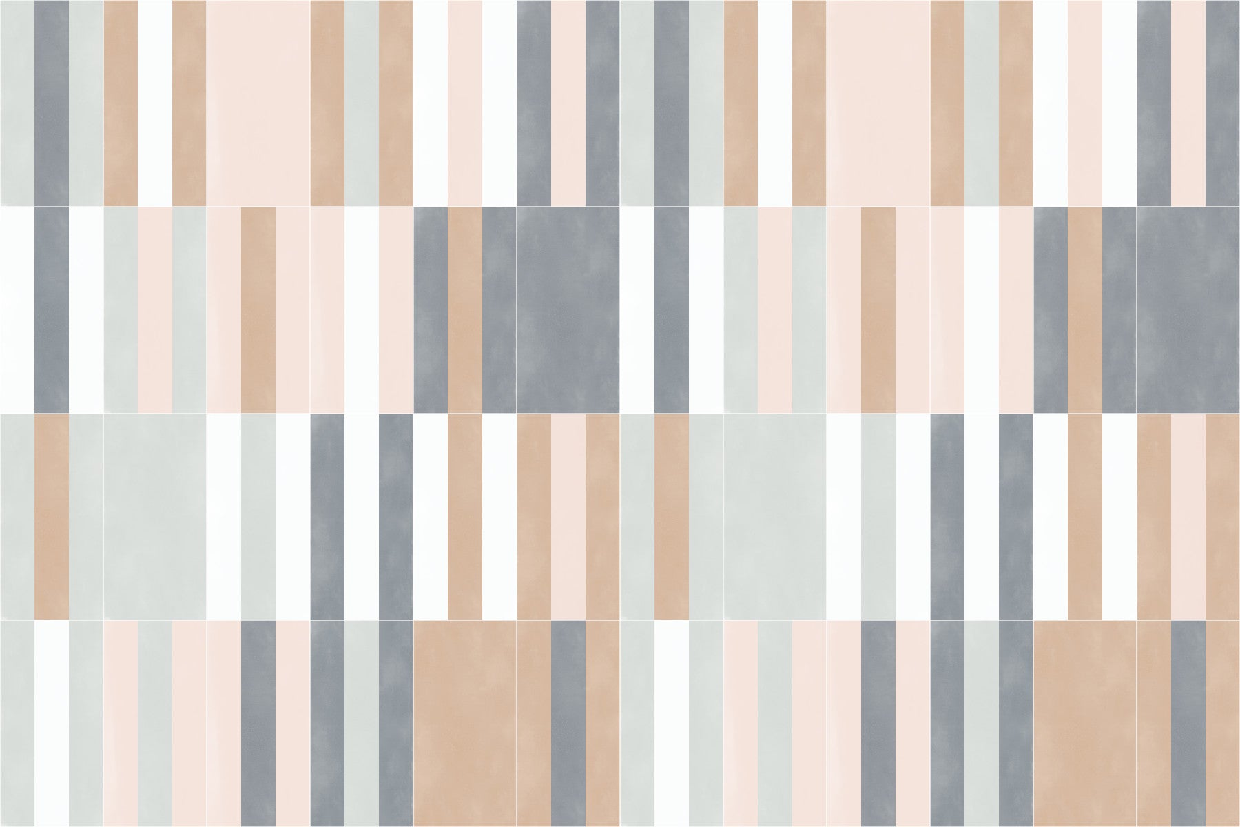 Indulge in the serene beauty of 'Muted Pastel Tiles Three,' a wallpaper design featuring a captivating arrangement of rectangular tiles in soft pastel hues. Subtle variations in muted pinks, calming greys, and gentle beige tones create a sophisticated and calming atmosphere. The repeating pattern of vertical stripes offers a sense of order and tranquility, making this wallpaper ideal for creating a minimalist and peaceful ambiance in any space. The understated elegance of the color palette and the clean lines of the tile design make this a versatile choice for modern and contemporary interiors, providing a soothing backdrop for your digital workspace or home screen.