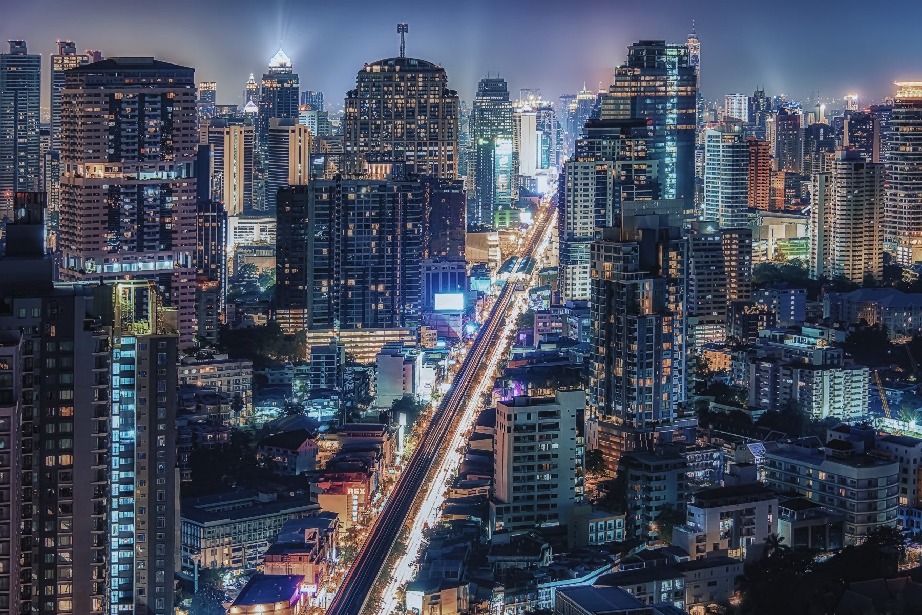 Capture the electric energy of a vibrant city with this stunning cityscape wallpaper. The design shows a sprawling metropolis at night, illuminated with an array of neon lights and towering buildings. The cool blue and warm gold tones create a modern, sophisticated vibe. It adds depth and dimension to your living room, bedroom, or office. This wallpaper for walls is sure to transform any space into a stylish urban sanctuary and beautifully complements modern interiors.