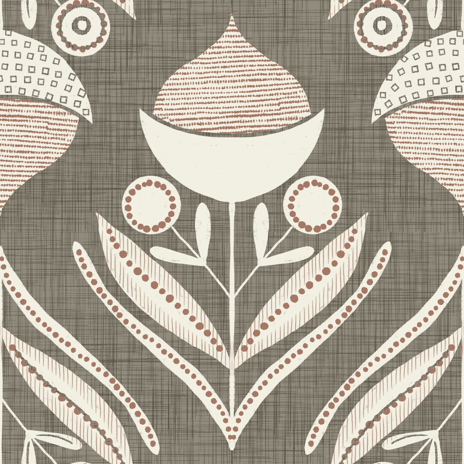 Neutral Bloom Textile Wallpaper offers a serene, odd design.