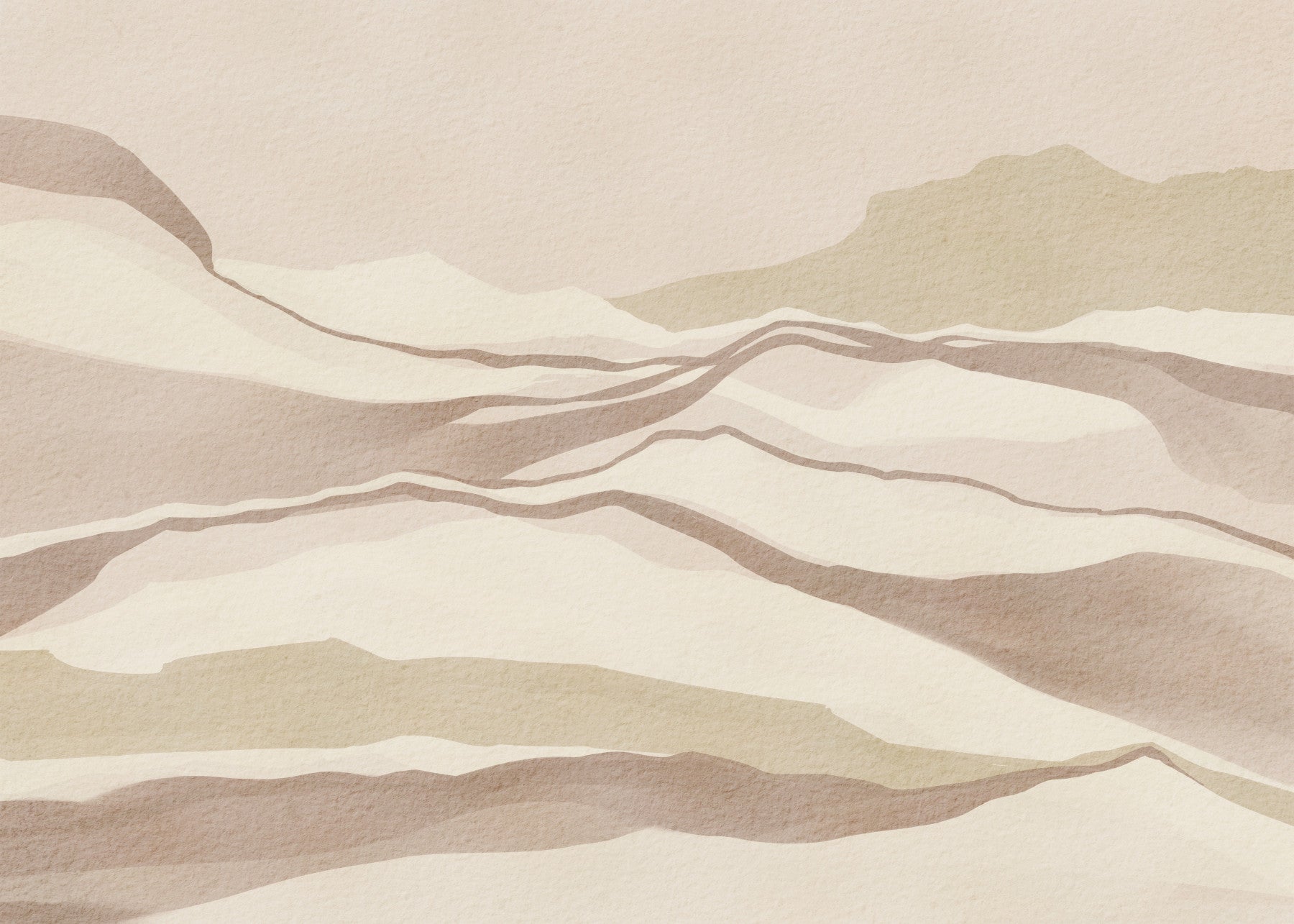 Calm Neutral Desertscape Mural, subtle watercolor texture.