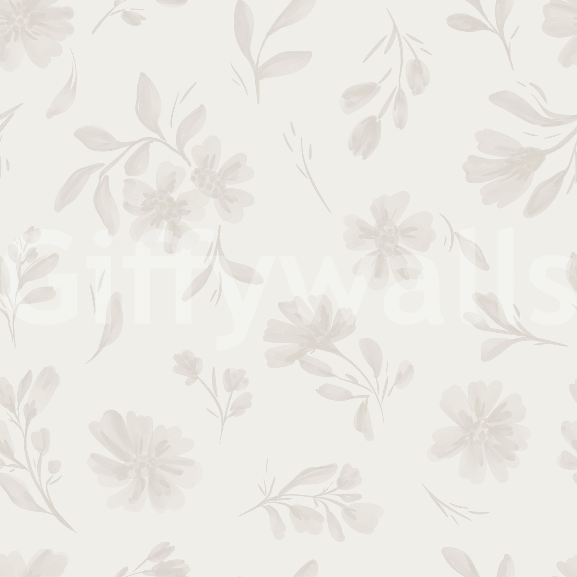 Embrace a serene atmosphere with this delicate floral wallpaper. The watercolor style and muted color palette create a sense of tranquility in any space. The seamless design ensures a smooth and continuous aesthetic. Ideal for bedrooms, living rooms, or bathrooms, this wallpaper for walls blends seamlessly with Scandinavian or minimalist interiors. It adds a subtle, understated beauty, enhancing the room's calming ambiance. The gentle pattern promotes relaxation and creates a peaceful haven.