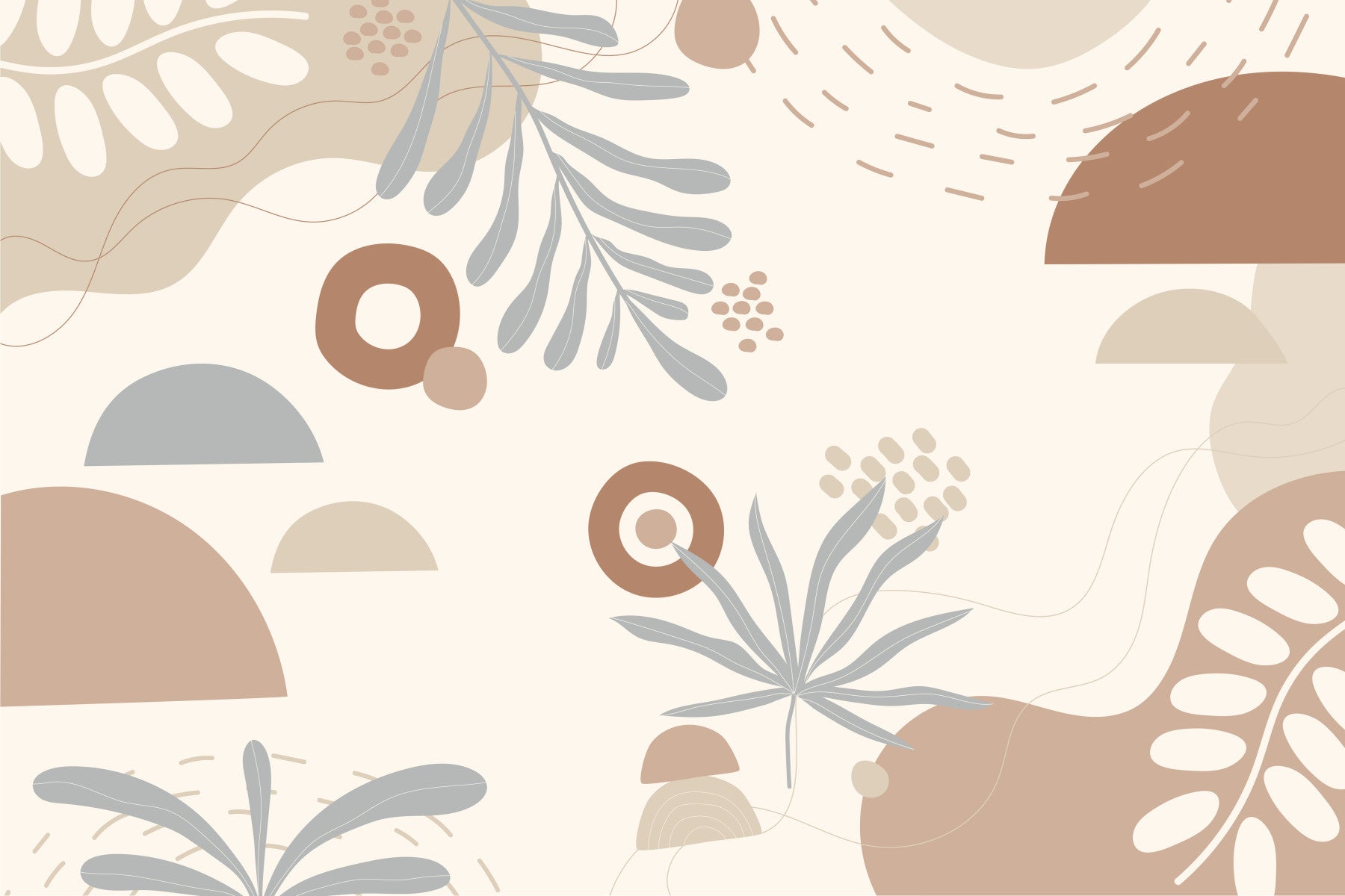 Elevate your home decor with this neutral, abstract leaf wallpaper for walls. It presents a stylish blend of geometric shapes and simplified botanical elements. The gentle color palette includes shades of beige, brown, and gray. Install it in a living room, bedroom, or office for a soothing atmosphere. This understated pattern beautifully enhances many different interior decor choices, for example scandinavian.