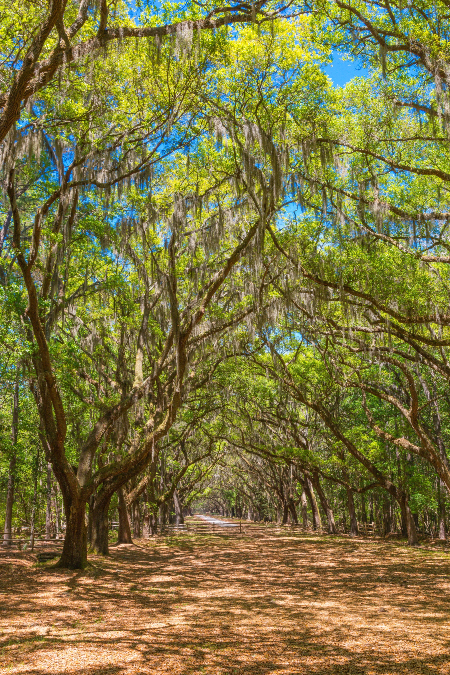 Transform your space with this striking nature-inspired wallpaper for walls. The design features a mesmerizing avenue of oak trees draped with Spanish moss, creating a serene and dramatic atmosphere. The rich greens and browns bring an organic touch to any room. Perfect for living rooms, bedrooms, or hallways, this wallpaper adds depth and visual interest, complementing rustic, classic, or even modern minimalist interiors. Bring the charm of the South into your home.