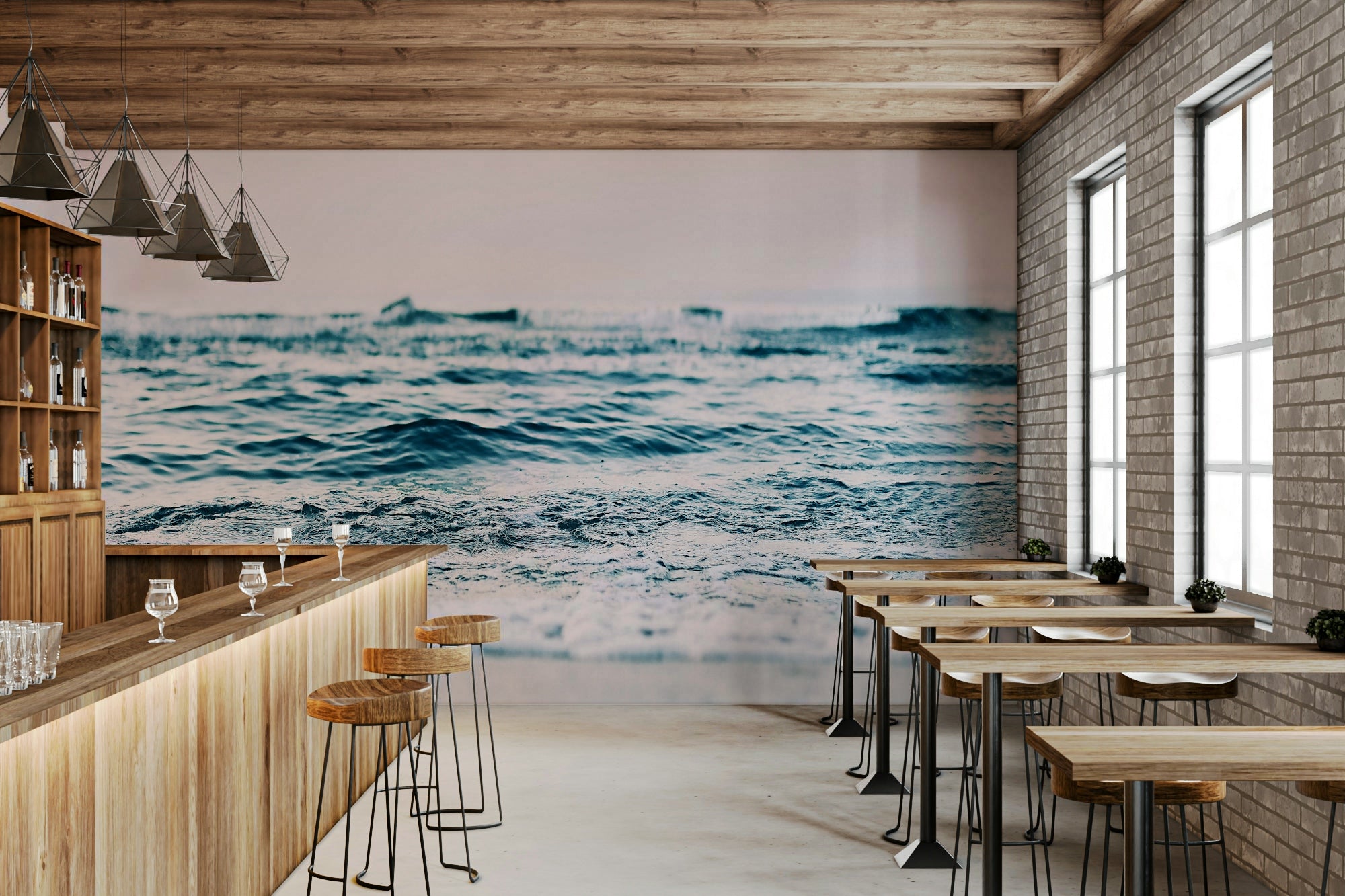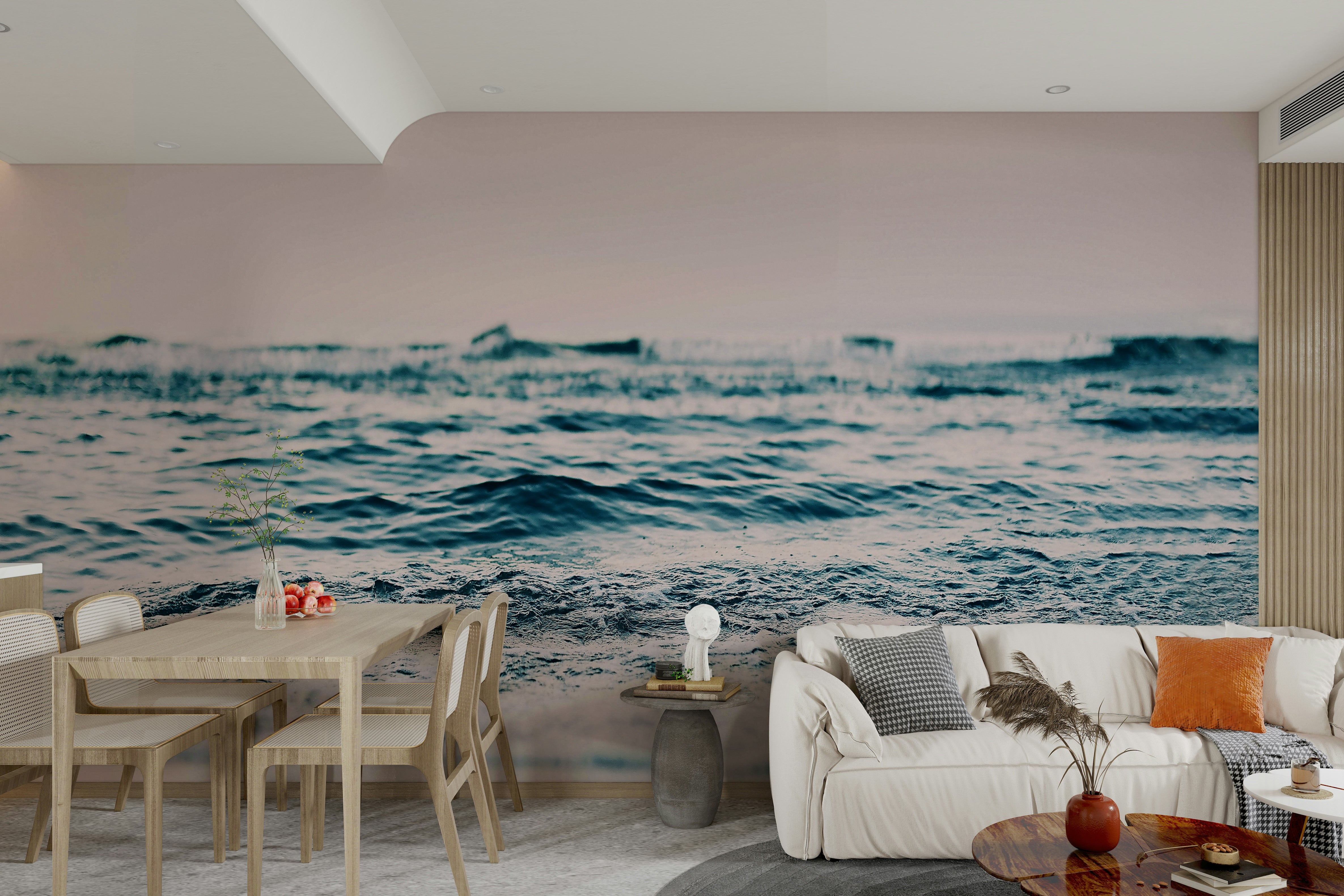 Soft blush ocean wave wall design