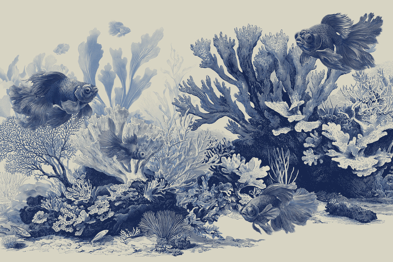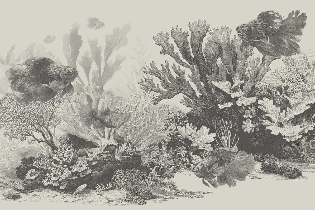 Oceanic melody wallpaper mural - experience the magic of the ocean. This mural captures the underwater world very graphically, bringing rich varieties of fish and marine plants to life. Its intricate design and lively colors create a vibrant, inviting space. Suitable for any room, it celebrates your love for marine life and provides a distinctive decorative element. This mural is one of the best ocean-related pieces, with stunning visuals and quality. The detailed patterns and bright hues make it a centerpiece in any room, adding a touch of elegance and nature's beauty. Order today and enjoy the marine magic it brings to your walls, turning your space into an underwater haven where every glance is a dive into the ocean's wonders.