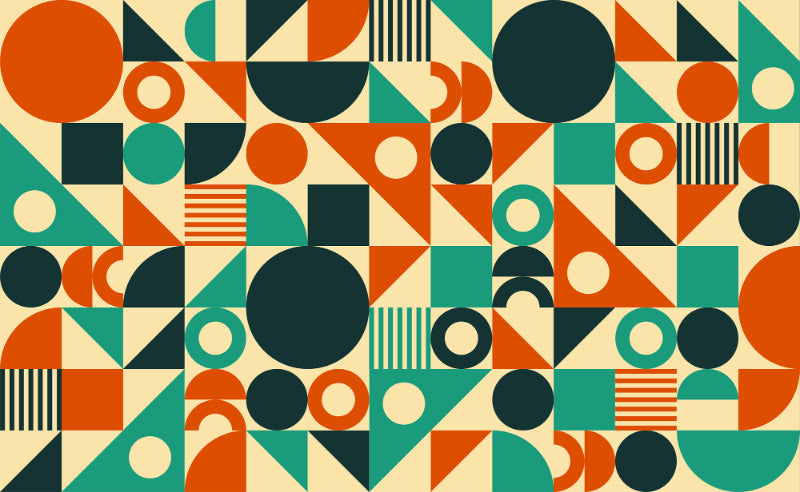 A bright and expressive abstract wallpaper, it is an extravaganza at play for shapes and colors to kick into any living space with a modern art vibe. Orange, teal, and cream intersect one another, creating large circles and super deep rectangles, with its depth layering of bright stripes below. It will bring you a fresh and stylish feel with this design without ever feeling clutter-y. Great for anyone who wants to add a splash of geometric fun to their home decor.
