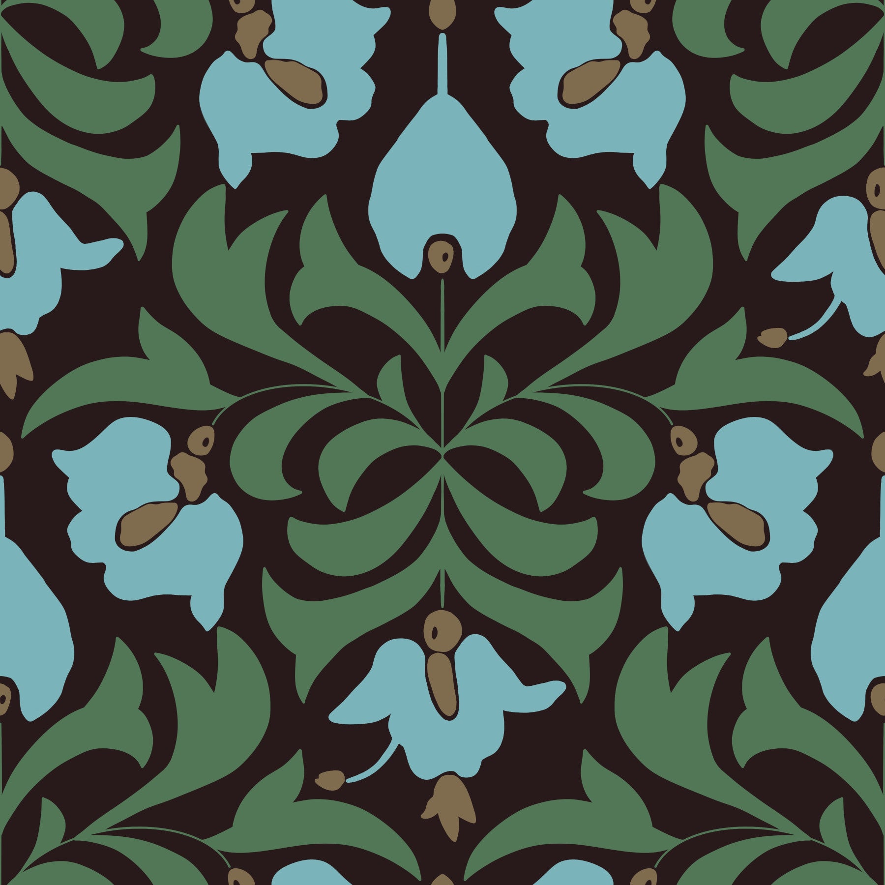Embrace nostalgic style with this floral-themed wallpaper for walls. The design showcases mirrored stylized blue flowers and green foliage across a deep, earthy brown canvas. This wallpaper creates a warm and inviting atmosphere, perfect for dining rooms, entryways, or reading nooks. Its harmonious blend of colors ensures it elevates interiors with vintage refinement, making your space a haven of classic beauty.