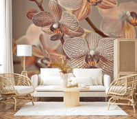 Orchids Close-up. Introduce a touch of understated elegance with this graceful floral wallpaper for walls. The subtle patterns and soft sepia tones bring a calming presence to any room. Close-up orchids create an intimate, inviting atmosphere. The detail in the blooms, with delicate stripes and textures, lends depth and visual interest. The neutral color palette lets the design work well in bedrooms, hallways, or living spaces. Transform your walls into a botanical display that enhances serenity and style. This design integrates effortlessly with a wide range of interior décor.