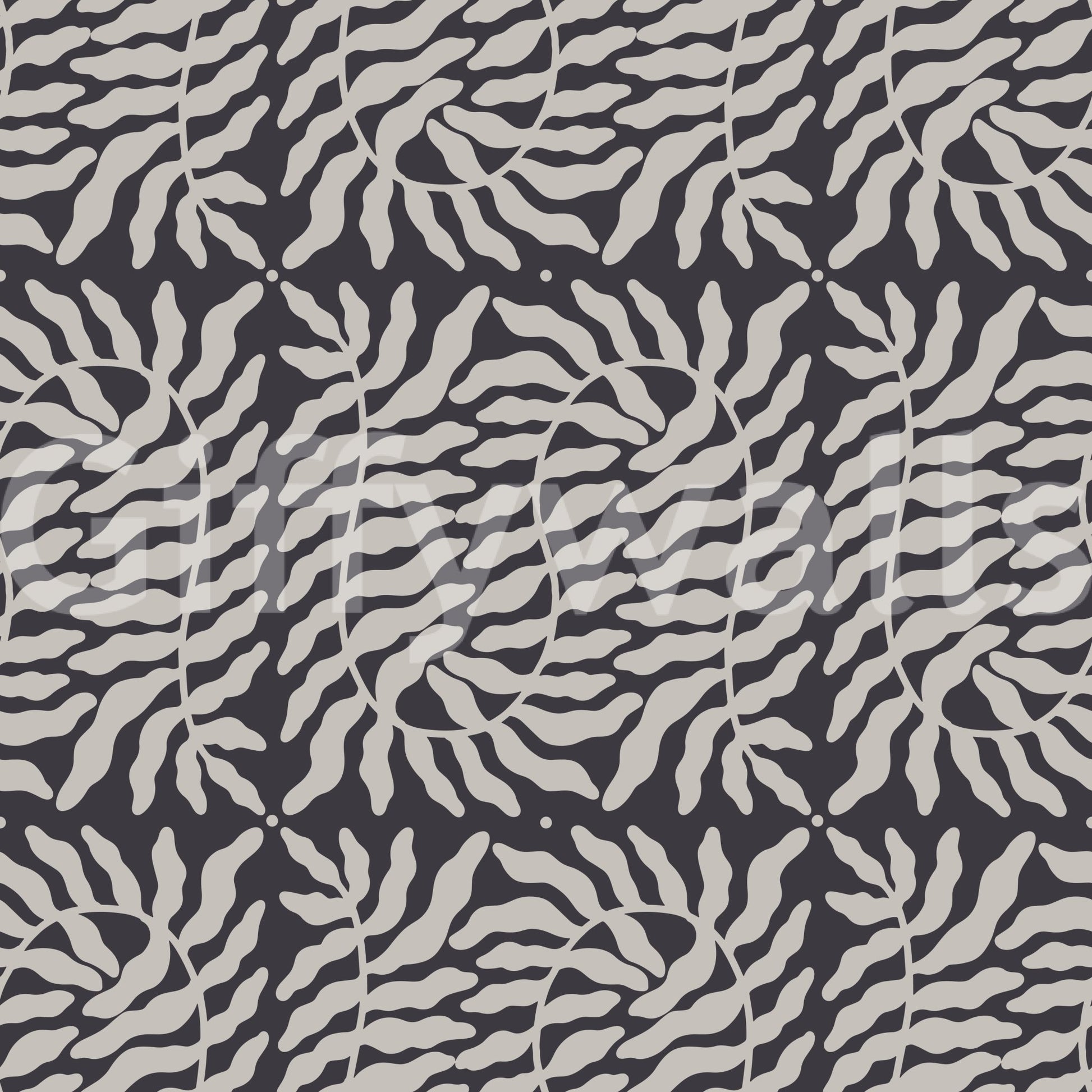 This wallpaper showcases a modern and stylish take on organic forms. The design features repeating stylized leaves in a soft taupe, set against a deeper charcoal background. Its simple yet elegant design makes it versatile enough for a wide range of spaces, from contemporary living rooms to serene bedrooms. The muted color palette evokes a sense of calm and tranquility, while the organic shapes add a touch of natural beauty. This subtle yet striking wallpaper is perfect for anyone who appreciates understated elegance and a touch of modern sophistication.