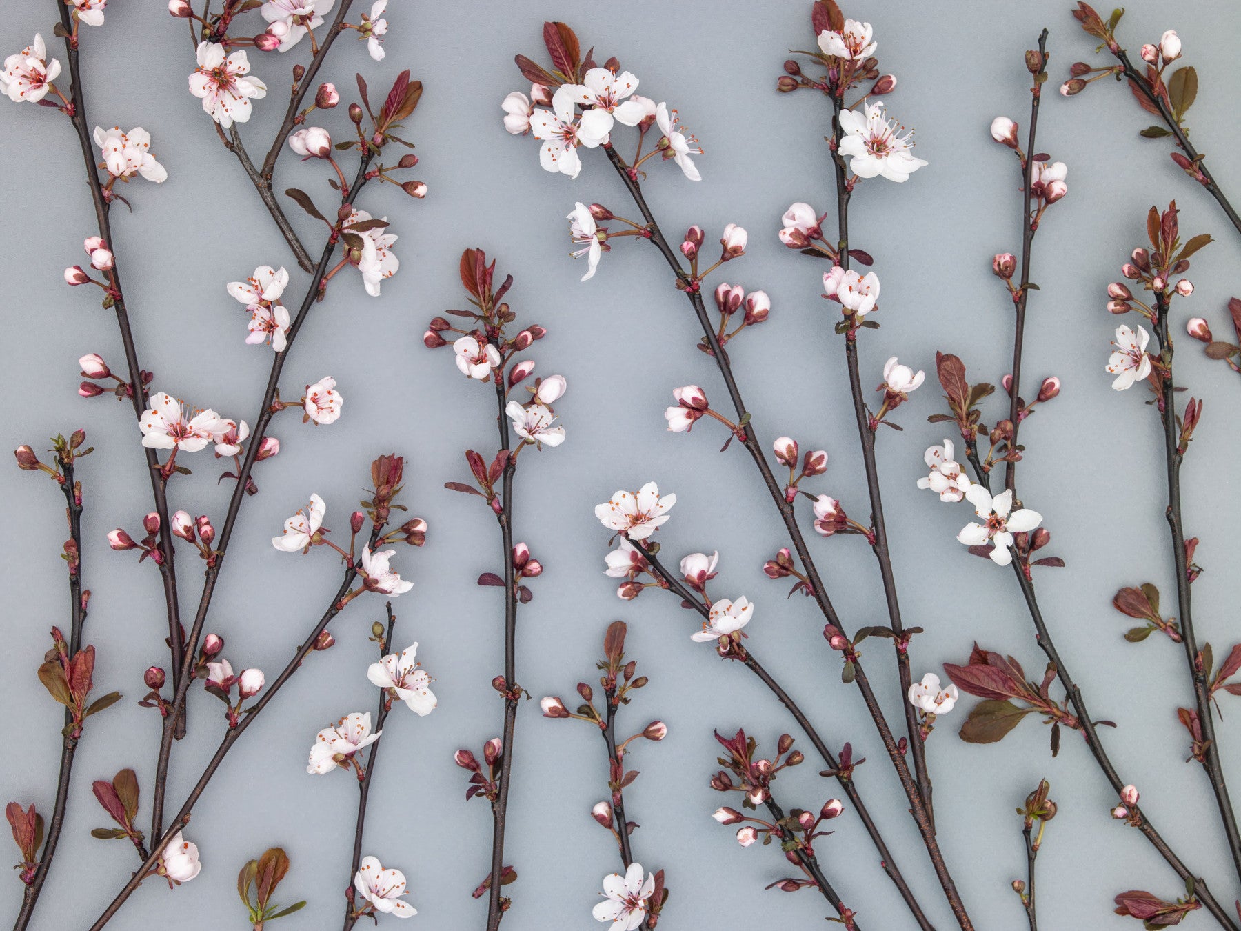 Ornamental Cherry Plant wallpaper branches against a cool gray background.
