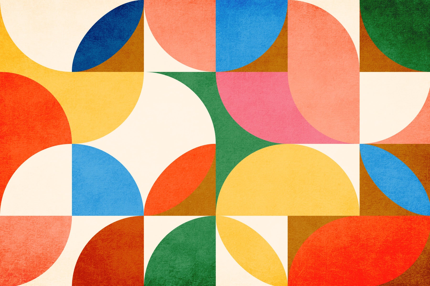 Evoking the minimalist charm and vibrant energy of its namesake city, Oslo wallpaper presents a captivating geometric dance. Bold, retro-inspired hues of oceanic blue, fiery red, sunshine yellow, and earthy greens harmoniously blend with softer tones, creating a dynamic yet balanced composition. The interplay of circular and square motifs embodies Scandinavian design principles, emphasizing functionality and visual delight. Subtle textured detailing adds depth and tactile interest, reminiscent of Oslo's rich cultural tapestry and its seamless integration of nature and urban landscape. 'Oslo' adds a touch of mid-century modern flair to any space.